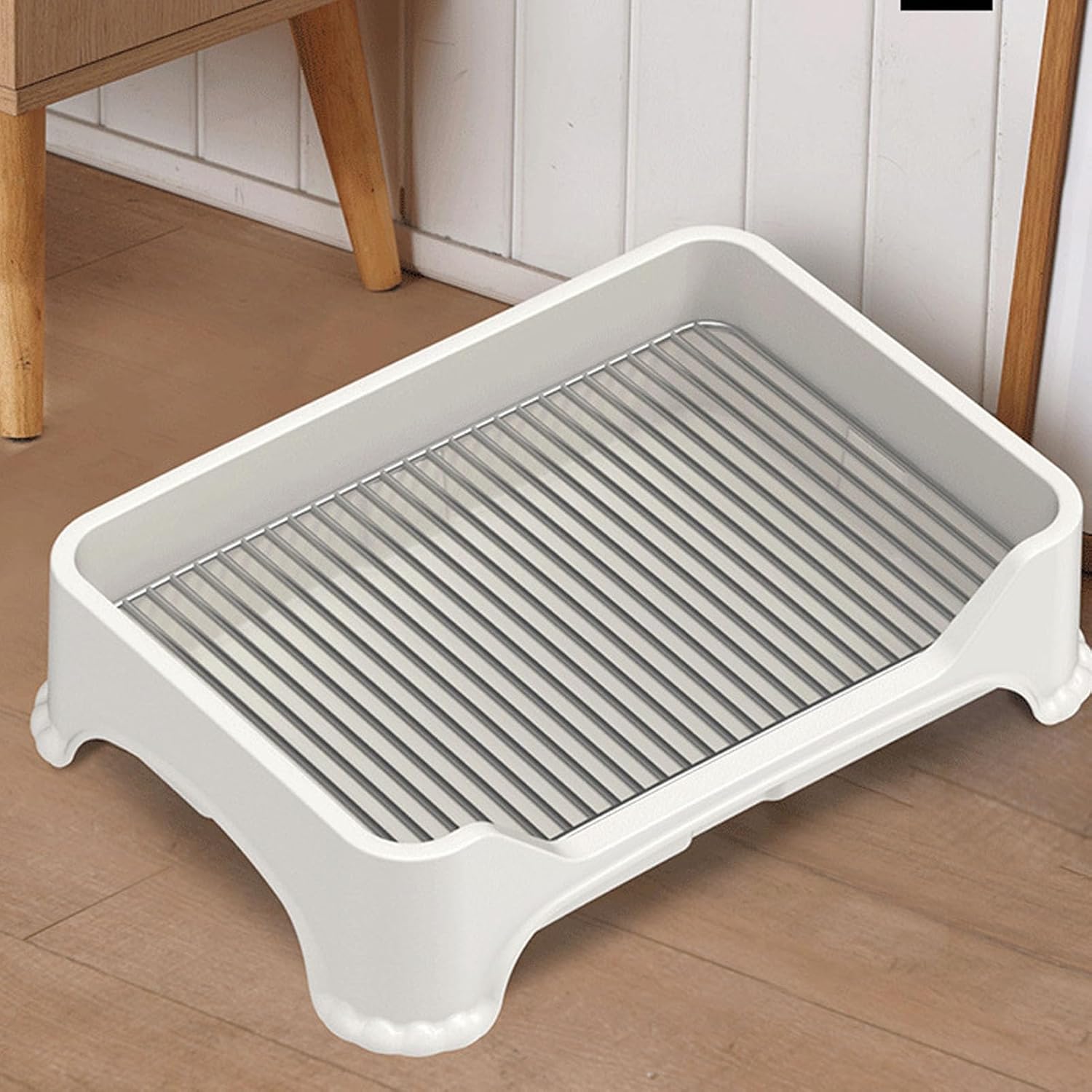 [STAINLESS STEEL MESH DESIGN] The pet potty tray features a high-quality stainless steel mesh grid that elevates your dog above their mess, keeping paws clean and your home spotless. This durable design ensures long-lasting use while providing a hygienic solution for indoor pet relief.[PERFECT FOR SMALL TO MEDIUM DOGS] Specifically designed with the perfect dimensions to accommodate small and medium-sized breeds comfortably. Your furry friend will have ample space to do their business without feeling cramped or uncomfortable during potty training sessions.[STABLE & ANTI-SLIP STRUCTURE] Engineered with a robust plastic frame and anti-slip features to prevent any unwanted movement or tipping. Your pet's safety is guaranteed with this stable platform that stays firmly in place during use, giving you peace of mind.[EASY CLEANING & MAINTENANCE] Designed for hassle-free cleaning with a simple wipe-down or rinse. The stainless steel mesh allows for quick drying, and the included cat litter scoop makes waste removal effortless, saving you time on daily maintenance.[MODERN & FUNCTIONAL DESIGN] Combines sleek aesthetics with practical functionality to complement any home decor while serving as an essential pet care tool. The minimalist design doesn't sacrifice utility, making it both a stylish and smart choice for pet owners.Spec:Item Type: Dog ToiletMaterial: PlasticSize: Approx. 48x33cm / 18.9x12.99inPackage List:1 x Dog Toilet (6 components)1 x Cat Litter ScoopNote: