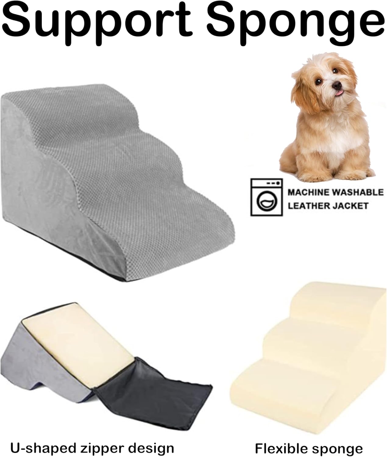 Product Description The climbing surface of the dog staircase is made of waterproof and leak-proof material, so you don't have to worry about the dog peeing on the stairs. The sides of the staircase are made of hard-wearing cotton and linen for dogs to grind their paws, while the side is designed with a leather label buckle that can be used to hold the sticker or move the dog staircase. The sponge material is lightweight and easy to carry, and can be used both indoors and outdoors. Provides greater climbing comfort for puppies and kittens. However, it is not suitable for large dogs. Specifications Materials: Cotton+Sponge Color: Grey Size:As shown Quantity: 1 Notes: 1.Due to the light and screen difference, the item's color may be slightly different from the pictures. 2.Please allow 0.2-0.78 inch differences due to manual measurement. 3.If you have any questions or have problems with the products you received, please contact us in time. Package Includes 1 * Dog Stairs