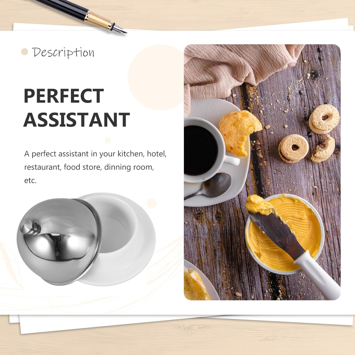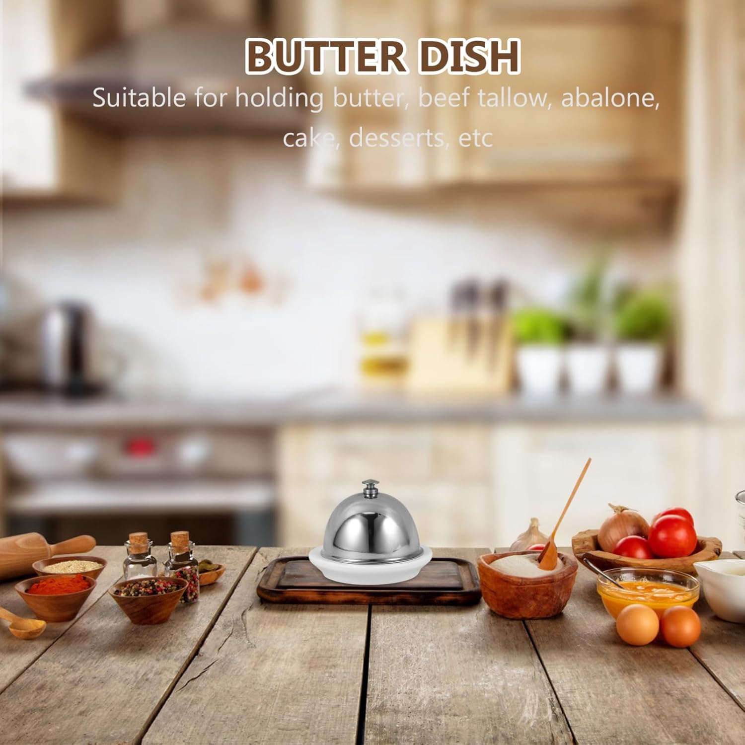 FeaturesExcellent Material:This butter dish is consist of premium stainless steel lid and ceramic plate, providing a good environment for storing butter to prevent it from deteriorating and meltingSmall Size:The small ceramic butter dish overall 3.7 inch diameter at the base,1.6 inch in height, the well for butter measures 2 inch diameter, keep butter fresh and deliciousWith Portable Handle: The lid on each butter dish has a small grip that makes it easier to remove it when youre getting butter and replace it when doneWide Application: Suitable for butters, cheese, jam, mayo, small cream cake, cupcake, appetizer, dessert, other , or as a salt or seasoning dishVersatile Use: Great for birthday party, wedding party, housewarming, Christmas, New Years, Valentines day, Fathers day, Mothers day, and moreSpecification:-Color: Silver-Material: Ceramic, stainless steel-Size: About 9.50X9.50X4.00cm/3.73X3.73X1.57inchPackage Including2 x ceramic butter dish