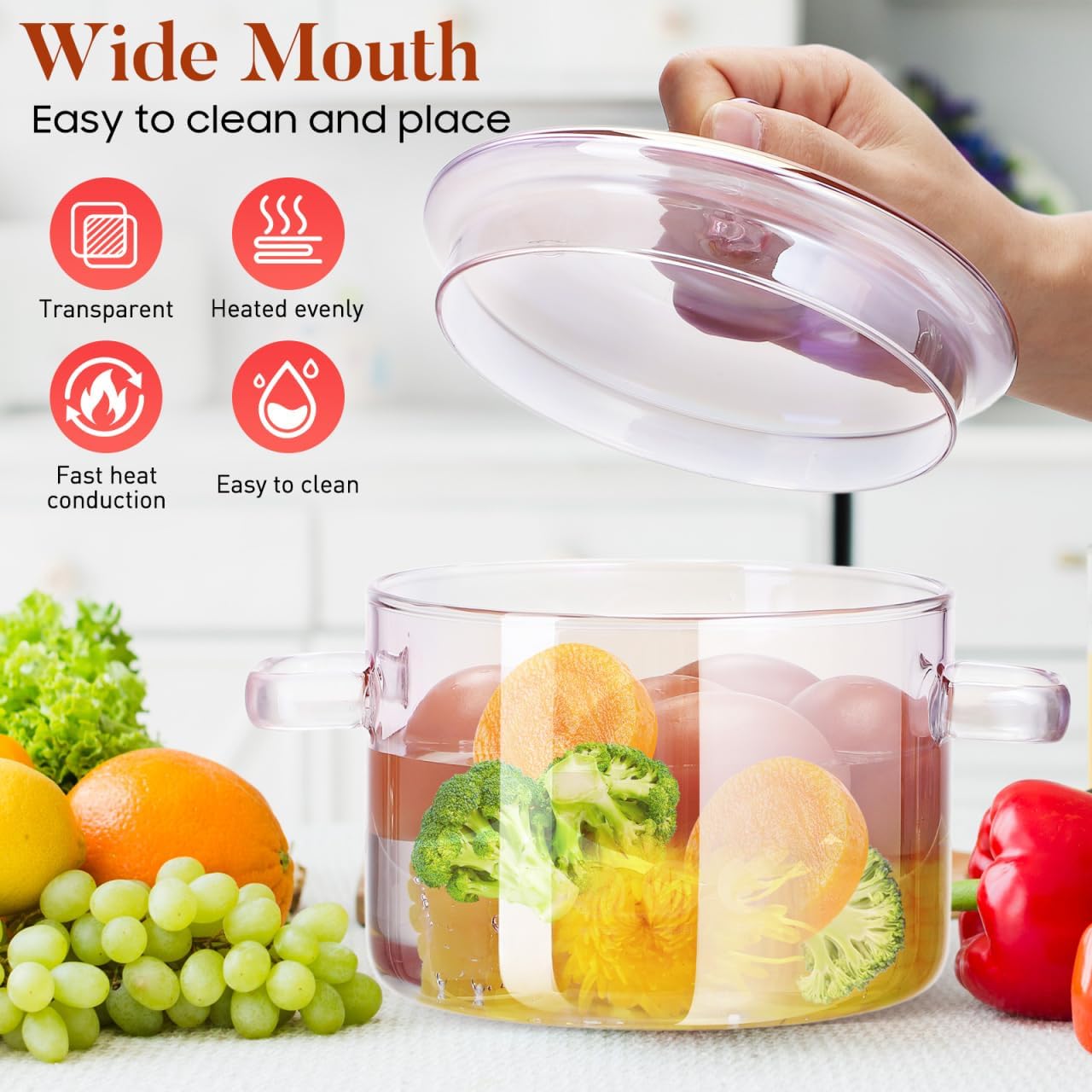 Features : Glass saucepan is made of food-grade borosilicate glass, refrigerator & stovetop , more healthier than plastic or stainless steel cookwareHeat Resisitant: The glass cooking pot with cover withstands temperature 0℉ to 400℉, suitable for all kinds of environments. Electric stove, oven, refrigerator, dishwasher and microwave Clear Design: This is a beautiful glass cookware set, transparent glass make the cooking Make the cooking process clear.Multipurpose: for baby food, milk, sauce, especially making instant noodles, just one pan no need another bowl anymore.Wide Application: to use on open flames and gas stoves. Also suitable for electric stoves, ovens, refrigerators, microwaves, etc.Specification:-Color:Pink-Material:Glass-Size:20.00X15.00X15.00cm/7.86X5.89X5.89inPackage Including1 x Glass Cooking Pot with Lid