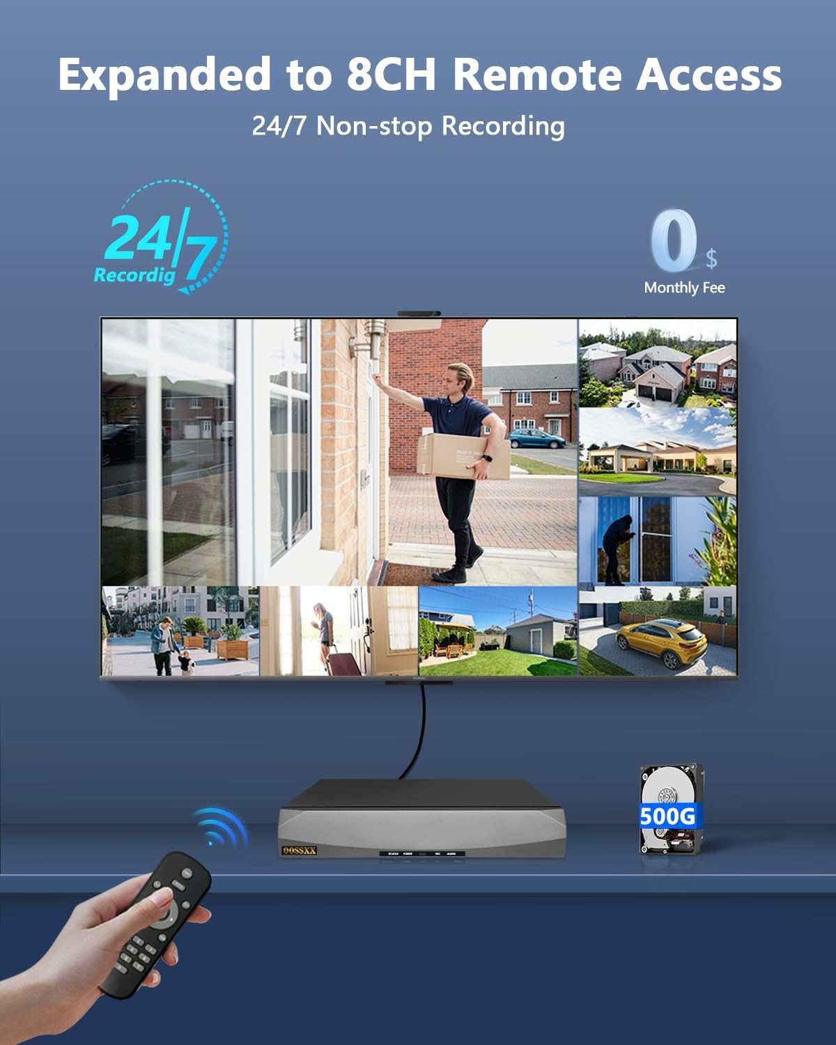 | BuiltIn Media | 2-in-1 Cable 60ft for Camera x 4, 8-Channel 4K DVR Pre-install 500G Hard Drive x 1, Dome Wired HD-Analog 4K/8MP Camera x 4, Remote x 1, USB Mouse x 1 |