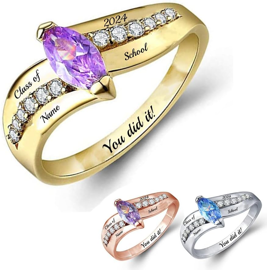 • Graduation gift: This custom ring can be engraved with a name and a custom birthstone to make the ring unique, perfect as a graduation gift for a classmate, friend, daughter, or yourself