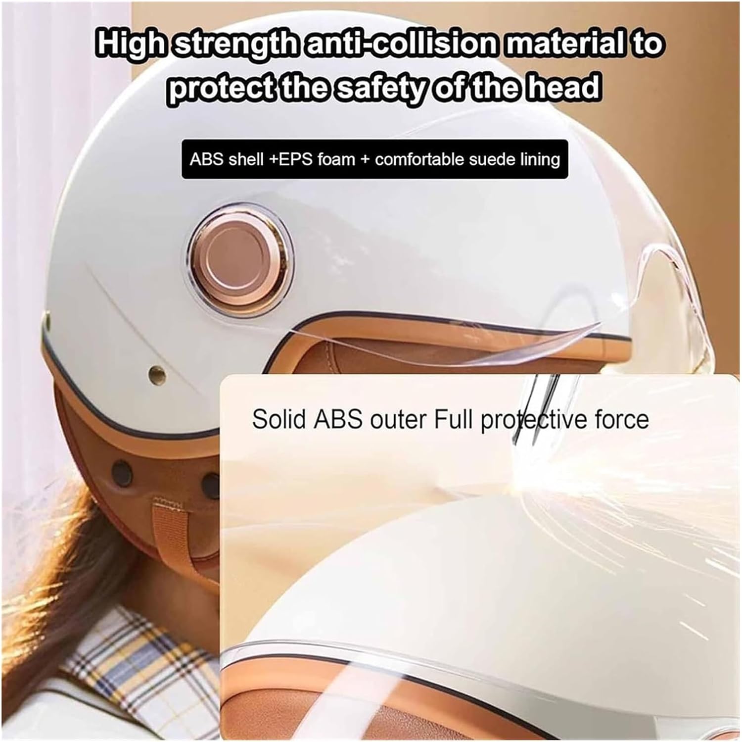 We are a professional manufacturer of motorcycle helmets, and we believe you can find your favorite helmet in our small store. Accompany your cycling journey along the way. To escort you.Helmet information: Vintage 3/4 Motorcycle Half HelmetMaterial: ABS material + EPS inner helmetWeight: about 1000gApplicable head circumference: S 56-57CM,M 58-59CM,L 60-61CM,XL 62-63CMApplicable season: all seasonsApplicable people: adults, teenagers, boys, girlsScope of application: motorcycle / bicycle / locomotive / electric car / scooter // flying / skiing / skating and other safety protectionPACKING LIST:1 * helmetNote: For an accurate head measurement, wrap a soft (tailor) measuring tape horizontally around your head about 1'' above your eyebrowsIf your head measurement is between two different sizes on the helmet size chart, if you like the head and helmet close to each other, take the smaller size, if you like it looser, take the larger size The yardage of one point