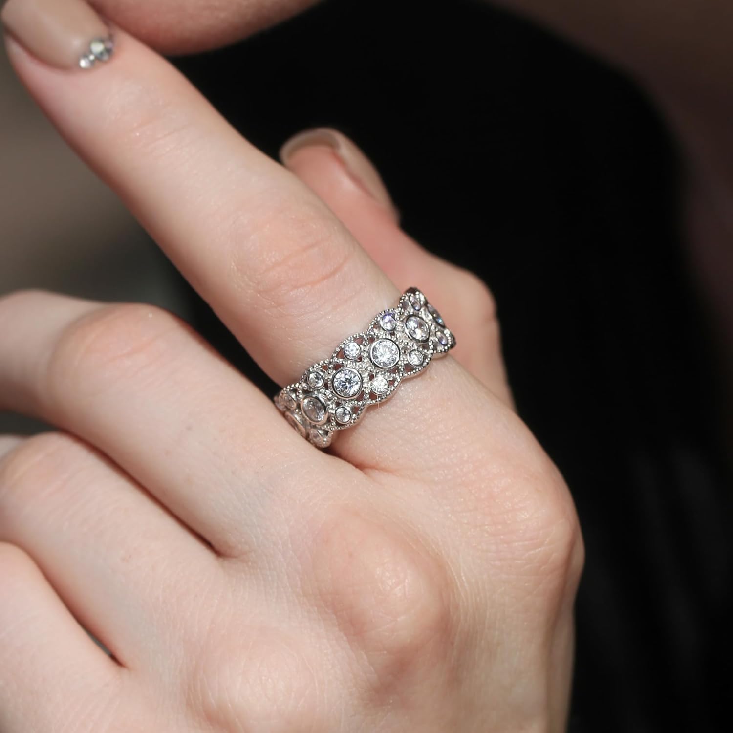 DoubleAccent Platinum Plated Sterling Silver Ring 1.75 CT CZ Stone Bezel Wedding Band Vintage Eternity Wide Band Ring, 8mm (Size 5 to 9)