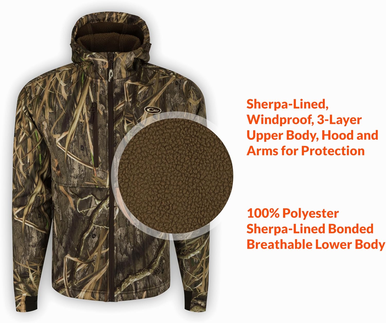 | Style | Mst Hole Shot Hooded Windproof Eqwader 3-layer Warm Sherpa-lined Full Zip Hunting Jacket |
