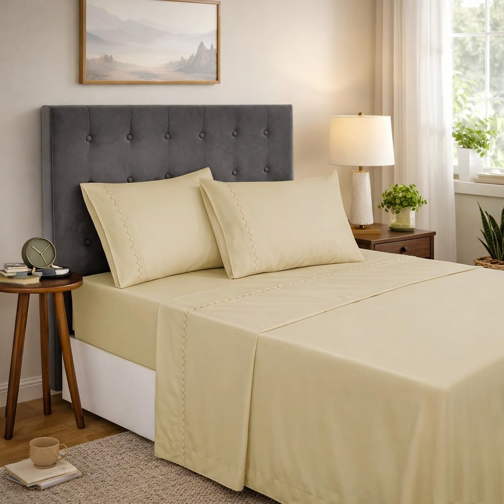 Thoughtful Details: This 4-piece sheet set includes 1 flat sheet (81 '' x 96''), 1 fitted sheet (75 '' x54 '' x16''), and 2 pillowcases (20 '' x30''). The fitted sheet features handy short and long side labels, plus deep pockets that fit mattresses up to 16 inches thick, making the bed quick and easy.