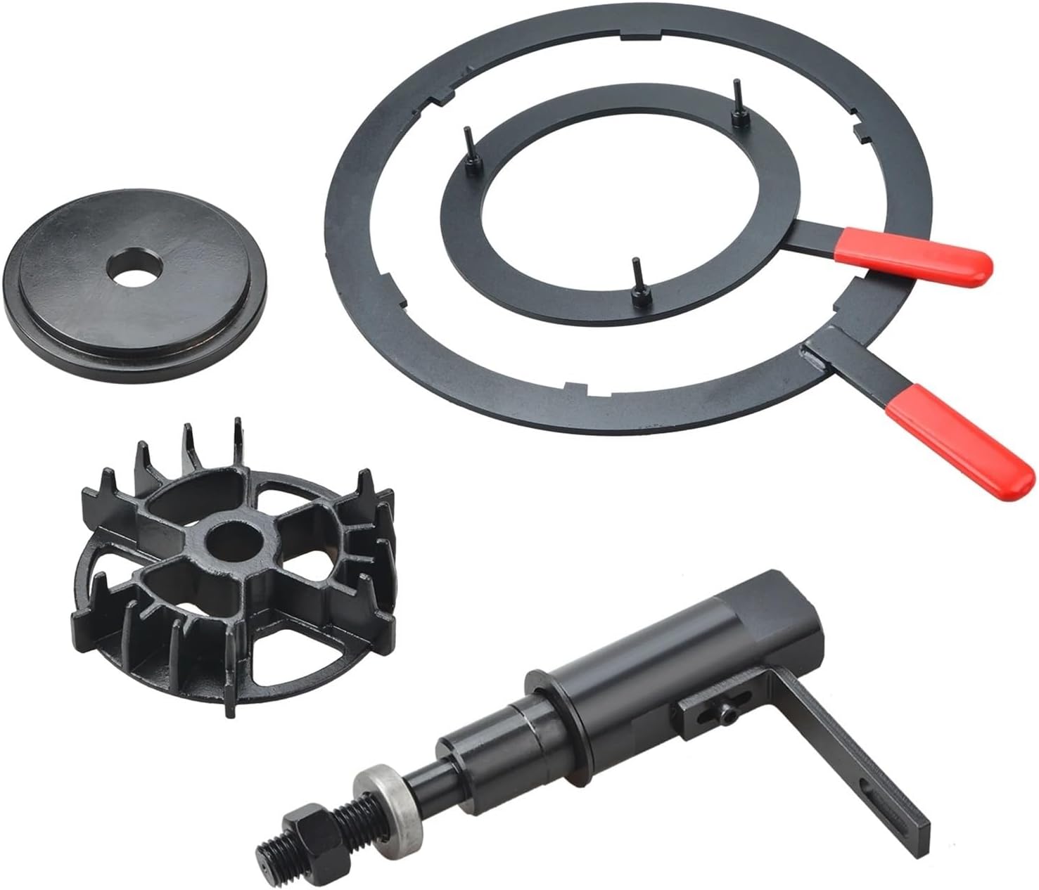 Attention!!!1. This product comes without a manual, If you don’t know how to use it, please contact us. 2. The color of the box is red or blue. If you mind, please contact us first.3. The container may have dents or cracks during transportation,but does not affect the use of tools, please understandDescriptions:Used to remove and install the dual clutch assembly and reuse the dual clutch assembly.Application: Compatible for fords focuss DCT dual-clutch transmission DPS6.Applicable Vehicles Include: Compatible For Fiesta 2011-2019; focuss 2012-2018; B-MAX since 2012; Transit Connect 2019 ect.Pick the Right Kit for the Job]: Repair, reset, or reinstall your 307-676 transmission with the ABN Dry Dual Clutch Transmission Reinstall Reset Tool; The right transmission tools for a complete kit[Tools You Need]: Transmission repair spring kit includes parts 307-676/1, 307-676/2, 307-676/3, 307-676/4, 307-676/5, and 307-676/6; Blow-molded case has a spot for each tool for better organizationThe correct way to disassemble the lockStep 1: Install the locking tool, and align the locking tool with the appropriate groove, in order to install the locking tool into the base cylinder.Step 2: Screw in the screws, pinch two wrenches and unscrew the bearing nuts.Step 3: After hearing a few crackling noises, remove the locking tool and confirm whether the internal card slot enters the round hole.Note: If the internal card slot does not enter the round hole, please continue this step.How to install the unlock lock correctlyStep 1: Insert the locked double clutch, put in the mounting sleeve, install the extension feet on three sides to fix the appropriate holes, and fix the extension feet.Step 2: Unscrew the screws and observe whether they are in place. Once in place, remove the tool and install the retaining ring.