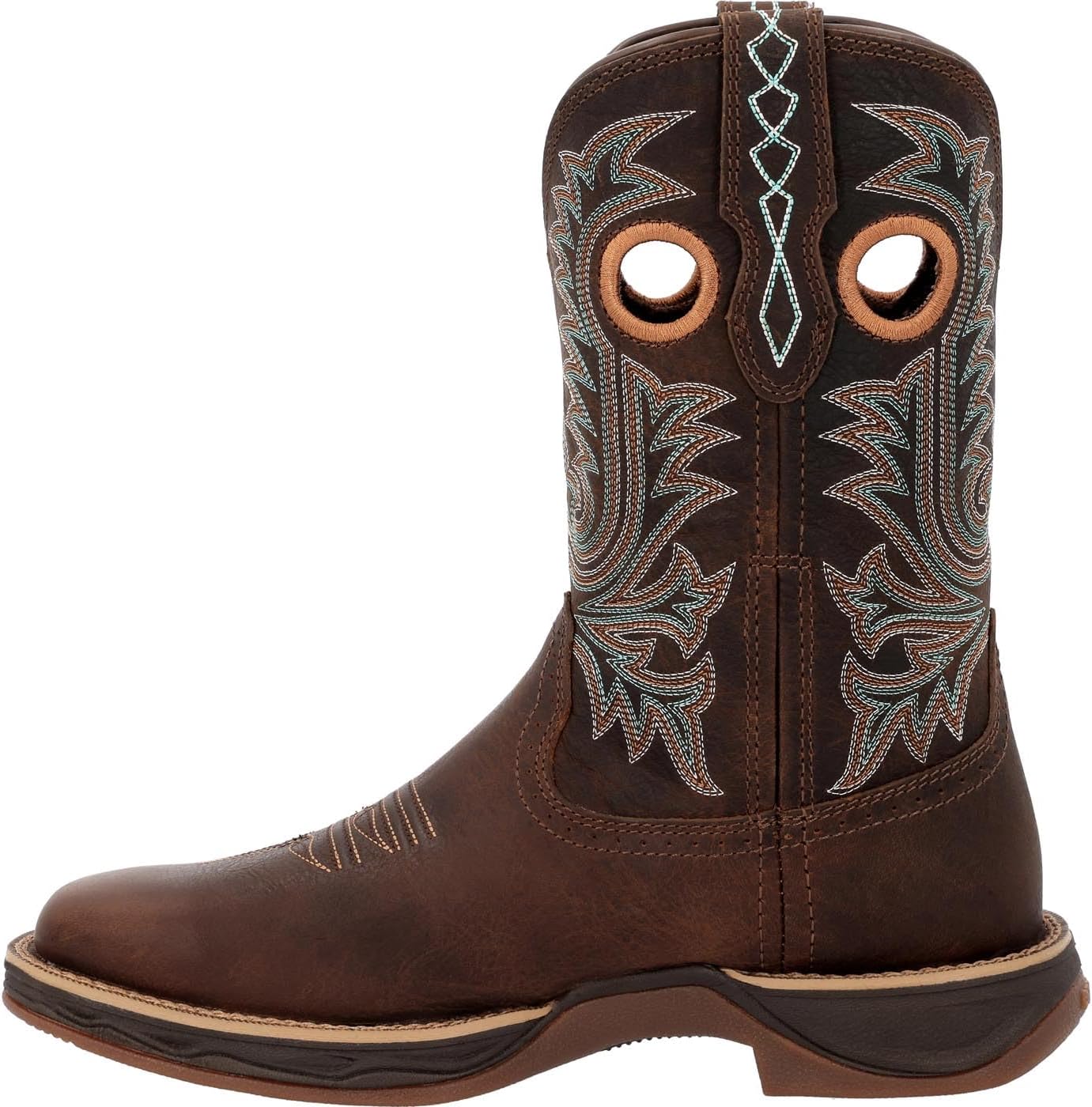 This is the Durango Lady Rebel Ultra-Lite Women's 10-inch Walnut Brown boot. This style features full-grain leather, an air mesh lining, Durango X-Pand System for easy on/off, cushion flex insole, double row sole stitch, 1 ½ rocker heel and a square toe. This collection is engineered with a 6-layer comfort system. The first layer is the Durango Advanced Comfort System Footbed with InsulKul, which is a temperature regulating technology that cools when hot and warms when cold. The second layer is the two-layer innersole that contours and molds to your foot. The third layer is the patented fiberglass Dually Shank System for twice the torsion stability and midfoot support. The fourth layer is the dual-density EVA midsole that has a soft shock absorbing forepart for ultimate flexibility and comfort and a firmer shock absorbing heel for added stability. The fifth layer is the anti-torsion external shank that provides added lateral stability and is perfect for shovels, ladders, and stirrups. The sixth and final layer is the slip and oil resisting rubber outsole. Discover unparalleled comfort, premium support, and all-day durability in the Durango Lady Rebel Ultra-Lite collection.