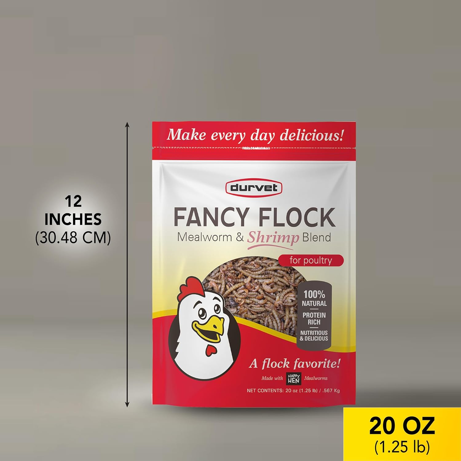 | Item Type Name | Durvet Fancy Flock Mealworm and Shrimp Medley, 20 Ounces, Poultry Treat Made with Happy Hen Treats Mealworms |