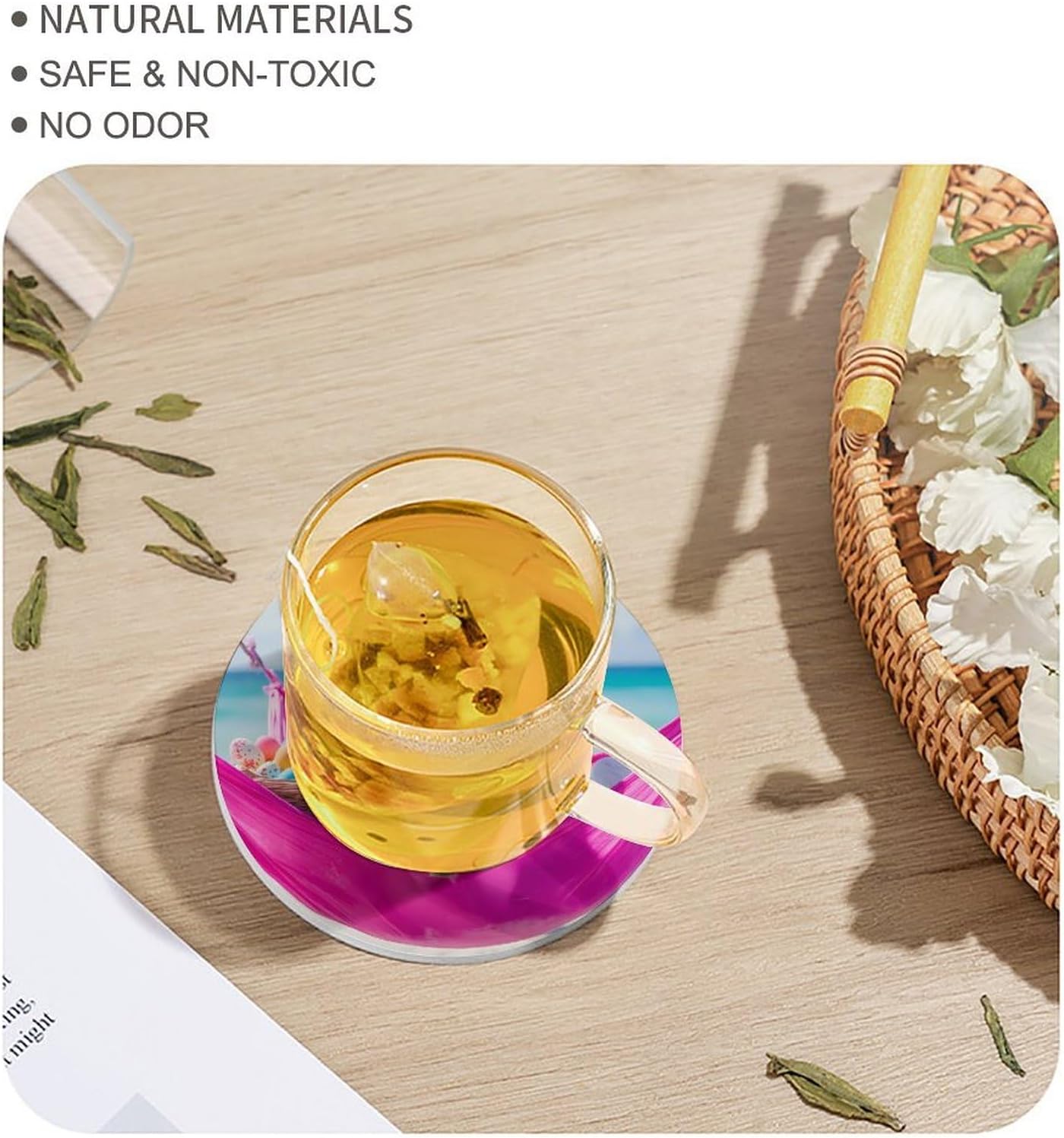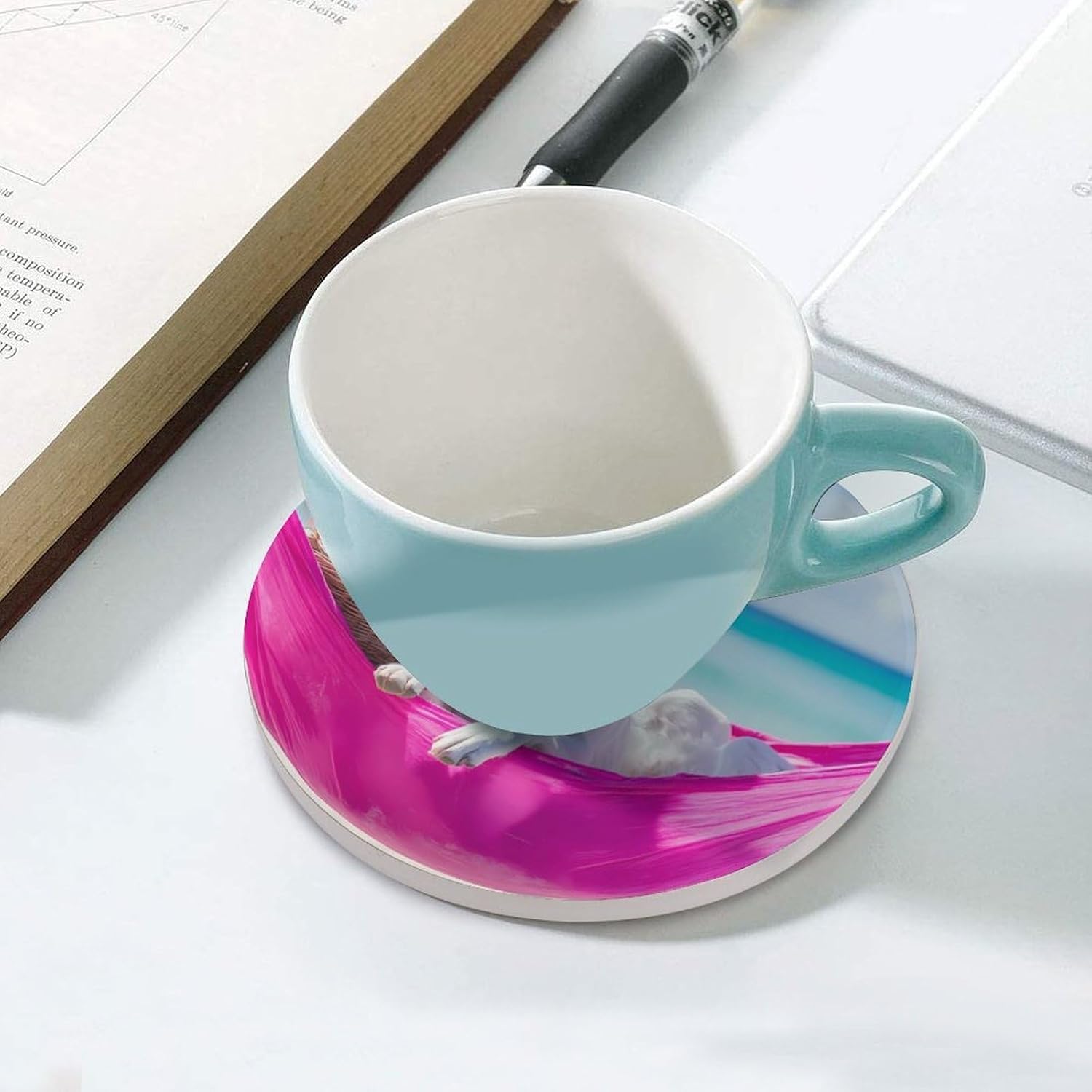 Cute Printed Round Drinks Absorbent Ceramic Coaster with Cork Base Suitable for Kinds of Mugs, Cups, Prevent Tabletop Wear And Scratches, and is Easy to Clean