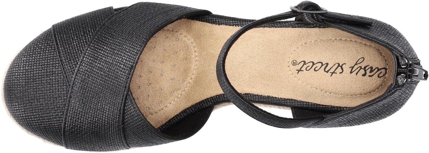 Stay on trend this summer with the stylish and comfortable Coast by Easy Street espadrille. The closed round-toe upper features a contemporary crisscross design and adjustable ankle strap with a back zipper that allows for easy on/off. These shoes have a Super Flex outsole and a generously cushioned insole for incredible comfort.