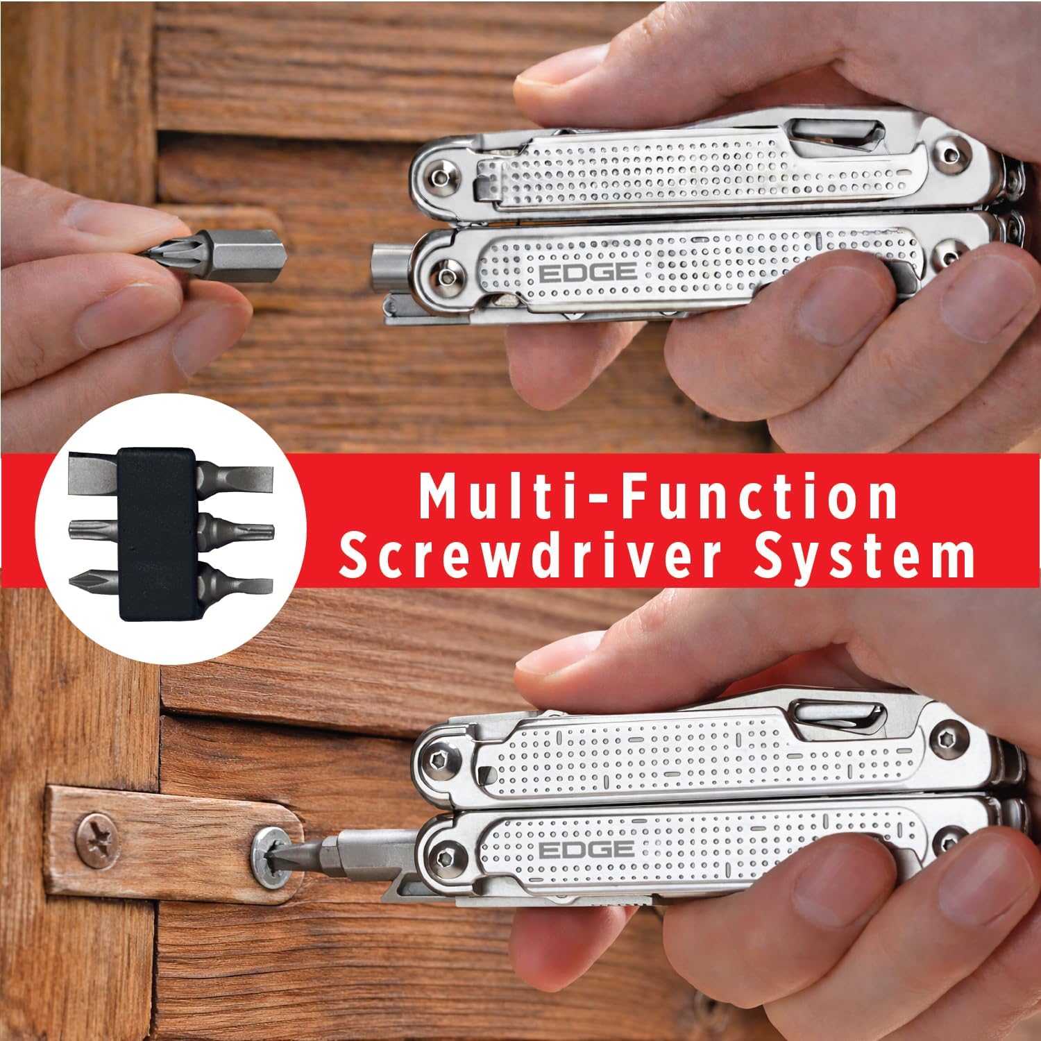 The EDGE 18-in-1 Multi-Tool Pliers is designed to deliver reliable performance wherever life takes you. Expertly crafted from high-quality stainless steel, this multitool offers exceptional durability, corrosion resistance and dependable strength for both everyday tasks and demanding situations. Equipped with essential functions such as needle nose pliers, regular pliers, tungsten wire cutter, serrated knife, standard knife, saw, scissors, diamond/metal file, chisel, screwdrivers and screwdriver bits, it allows you to cut, grip, tighten and repair with confidence. The compact folding design ensures easy portability, making it ideal for camping, hiking, fishing, car emergencies, DIY projects and travel. Built for precision, comfort and long-term reliability, EDGE multi-tools are engineered to be a dependable companion whether you’re outdoors, on the job or handling quick fixes at home. A must-have tool for anyone who values preparedness, functionality and smart design.