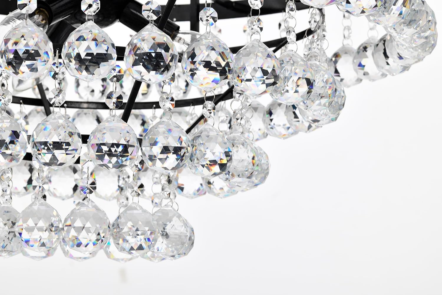 This dazzling, four tiered, crystal empire chandelier makes a statement in the home with its grand design and sparkling multi-faceted crystals. Intricate filigree details on the black finish hardware of this chandelier adds an extra element of style. The four tiers of crystals form a cascading effect that adds beauty and elegance. Hanging from a 40 in. chain, this crystal chandelier is sure to capture the attention of your guests in the entryway, foyer, and dining room.