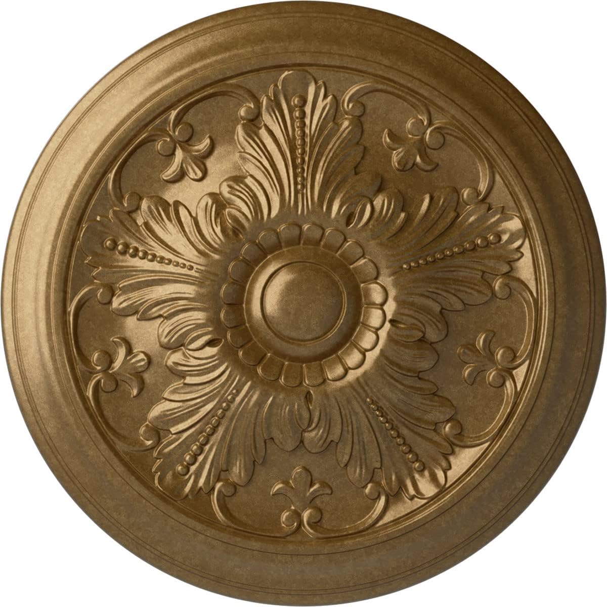 Our ceiling medallion collections are modeled after original historical patterns and designs. Our artisans then hand carve an original piece. Being hand carved each piece is richly detailed with deep relief, sharp lines, and a truly unique touch. That master piece is then used to create a mould master. Once the mould master is created we use our high density Urethane foam to form each medallion. The finished look is a beautifully detailed, light weight, solid construction, focal piece. The resemblance to original plaster medallions is achieved only by using our high density Urethane and not vacuum formed, "plastic" type medallions. - medallions can be cut using standard woodworking tools to add a hole for electrical or a ceiling Fan canopy. - medallions are light weight for easy installation. - they are fully primed and ready for your paint. If you have any questions feel free to ask. These are in stock and available for immediate shipment.