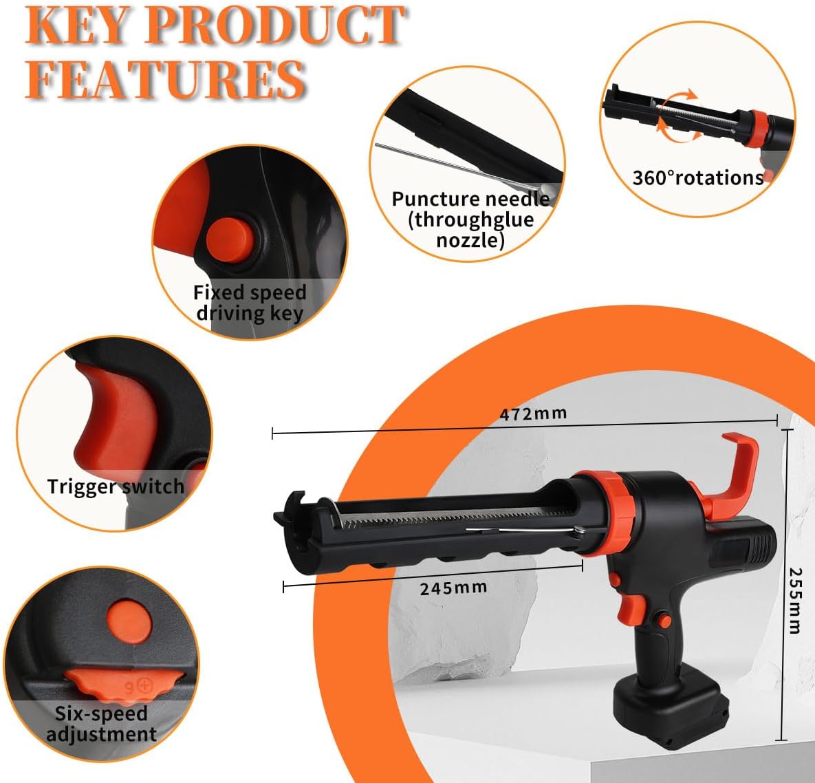 | Included Components | 1xCaulking Gun, 1xbattery converter, 3xsilicone caulking tool, 1xcaulk remover tool |
