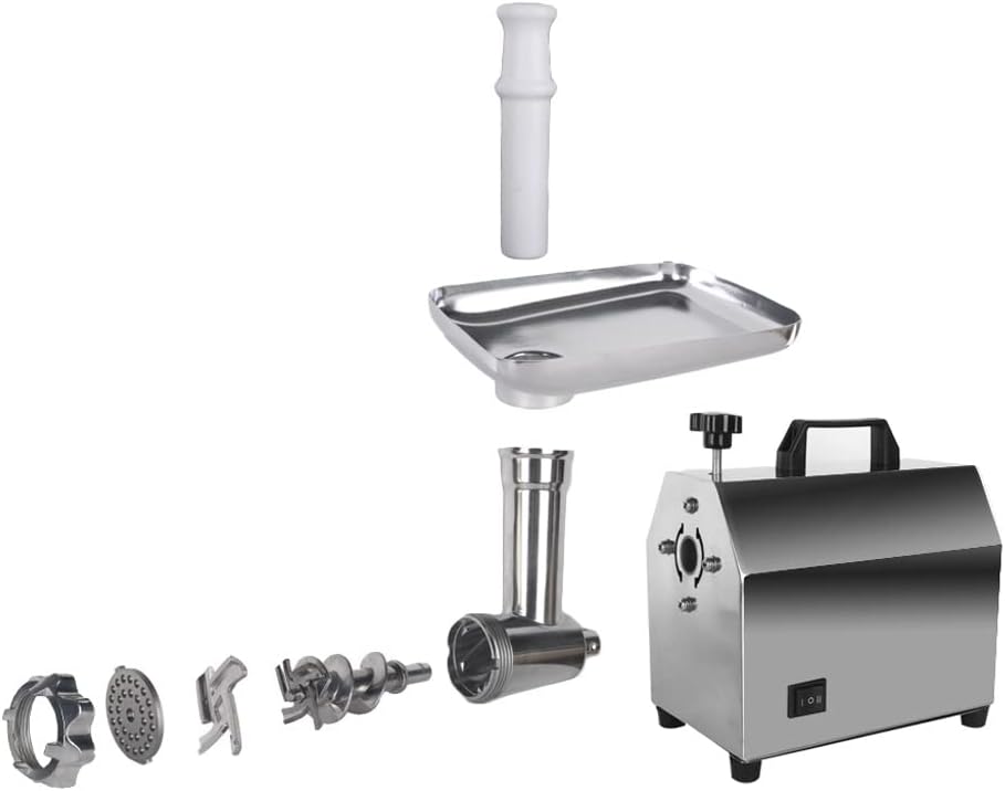 Fully enclosed type aluminum alloy compact structure with gear transmission. It is easy and works stable.Our goal is and . The body is made by quality stainless steel.The food parts are made by food-grade aluminum alloy, with vibratory finishing, it makes the surface smooth, no edge sharp and slit for contamination.The of the grinder is easy disassembly and cleaning. The design is elegant and good looking.The motor is equipped with overheat protection device, it works safe and secure. Meat grinder work efficient and effective.Name: Home-use Meat GrinderMaterial: Stainless SteelVoltage: 110-240V/50-60HzPlug: US/EU/UK plugCapacity: 25kg/hWeight: 8kgPacking size: 31*30*38cmPacking: 1pcs Manual Meat PressNota: la dimensione viene misurata manualmente, potrebbe esserci un errore di 1-2 cm, per favore capisci