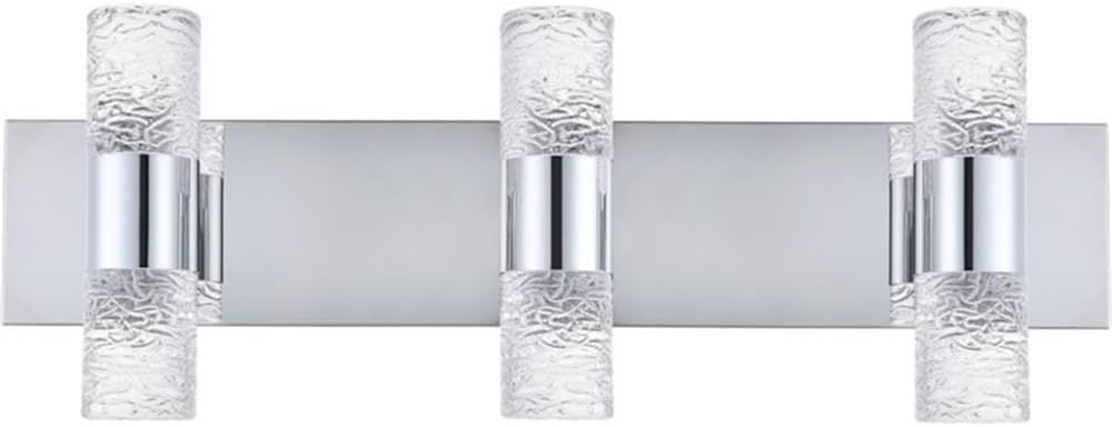 Immerse yourself in the beautiful Vega 3-light wall lamp in a sleek chrome finish. The intrigue of the lights shining through make it seem as if the entire fixture is glittering with celestial allure and will have you and your guests gazing in awe. Just as a star in the midnight sky, this wall lamp will surely shine brightly in your home, guiding you to your location, whether within your hallways, bathroom, or powder room.Multi-sided with an unique appearance and distinctive lighting. Illumination comes from a dimmable, integrated LED bulb. Cylinder shaped glass shade. Chrome finish backplate. Lighting direction: up and down. Bulb wattage:3.5W; Max wattage:21W. Dry location rated
