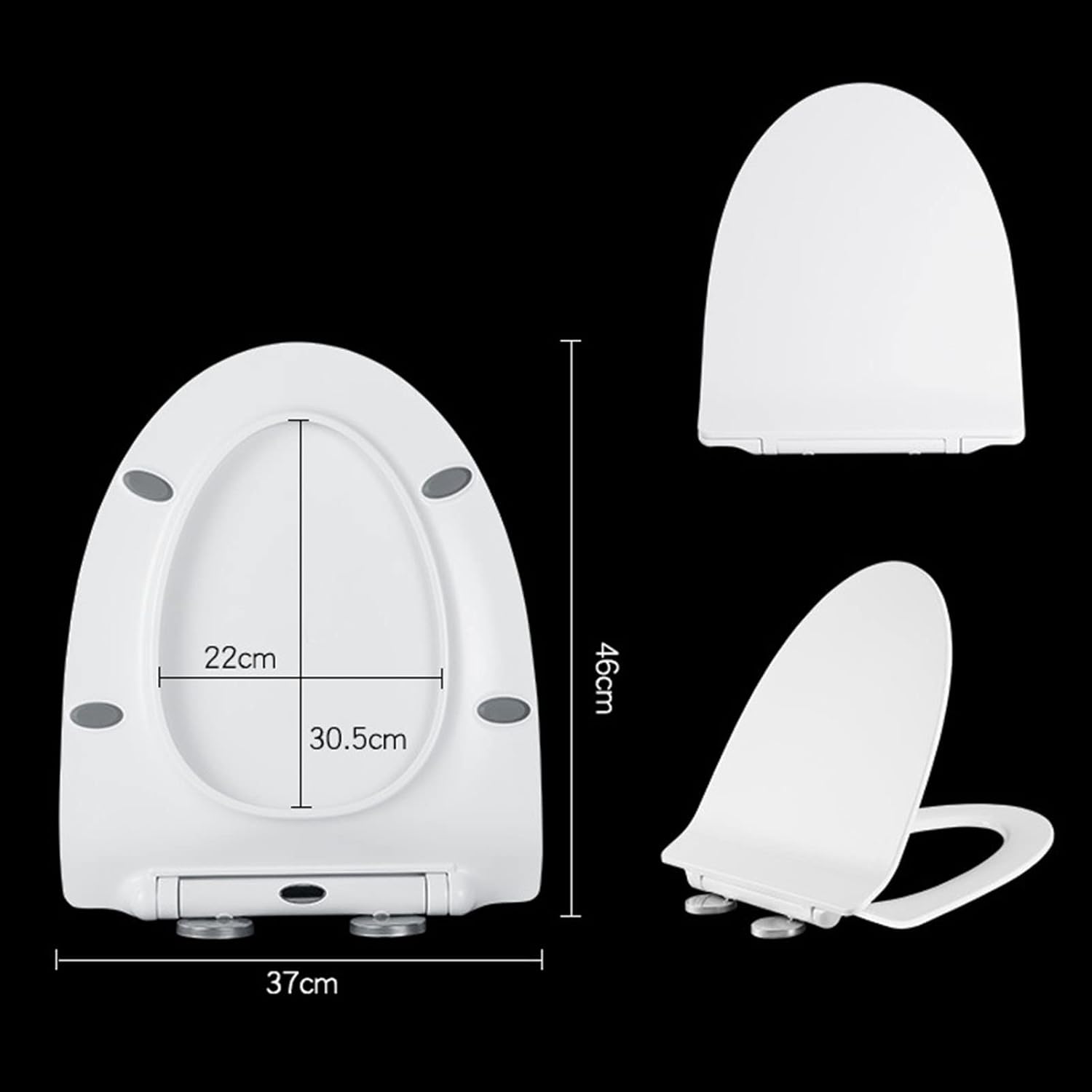 Thoughtful Design: This round toilet lid is ergonomically designed to enhance the comfort of the seat. It fit the most standard Round toilet. Please confirm the shape and size before purchasing. No Slam: The toilet cover can be slow down and silent when closing, the closing speed is very slow and quiet, it won't wake up your family at night. And it doesn't pinch and protects the ceramic toilet bowl. Easy to Clean: Toilet seat is made of high-quality thick polypropylene plastic, which is resistant to stains, chips, scratches, cracks on the surface, it's easier to clean than ordinary plastic. Easy Installation: The toilet cover is easy to install, it only takes a few minutes to complete the installation, and the product is light weight and can be installed by yourself, easy to disassemble and wash. Quick Release Function: This soft close toilet seat is the top fixing,only need one screw driver to release it. so you can clean toilet bowl easily Toilet Seats Screws: The Toilet Seat Screws are made with steel and premium plastic material for long time usage, no slippage, no rusting, and excellent tightly fit. Big Toilet Ring: The toilet seat Ring is bigger enough to suit to the different weight people.