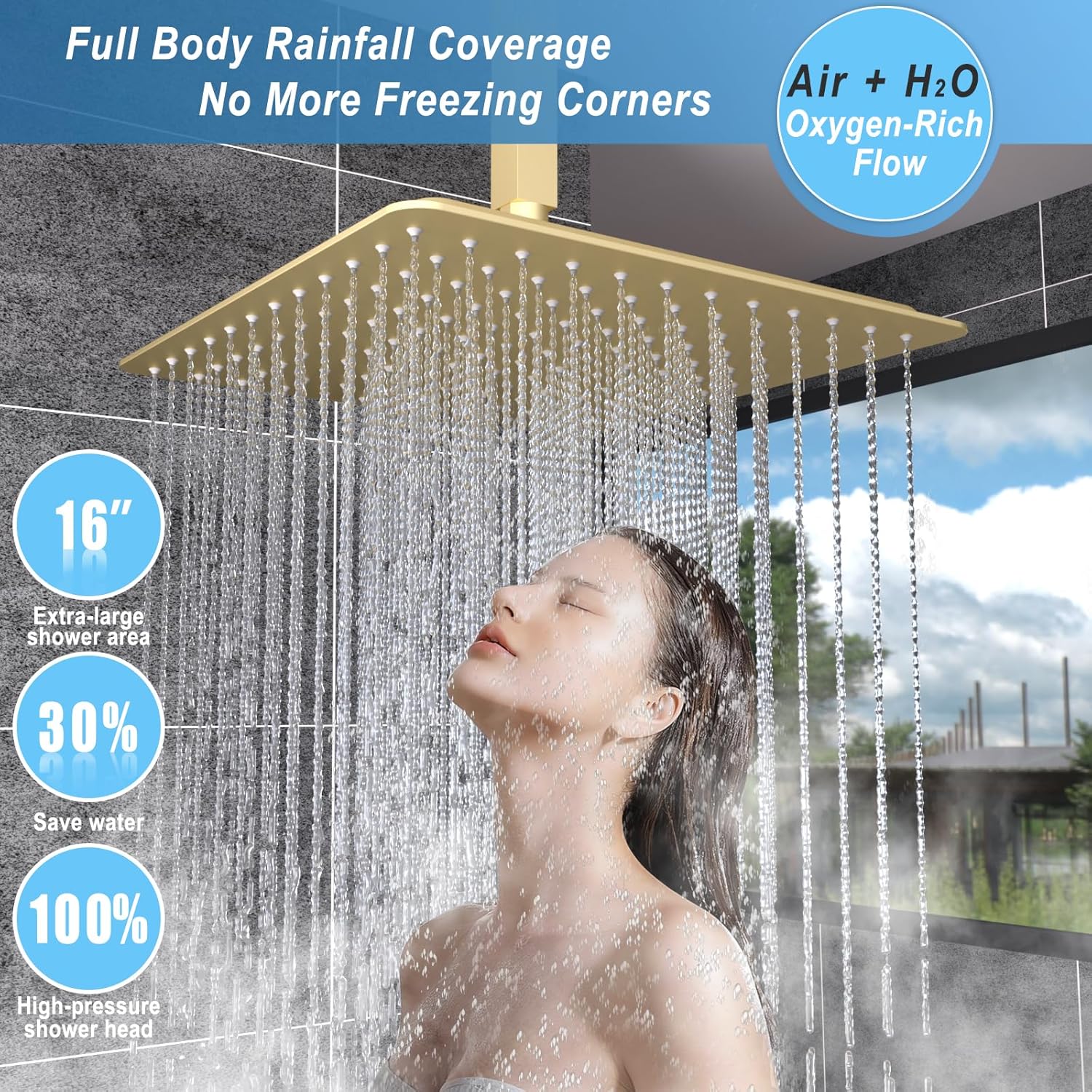 Are you looking for a suitable thermostatic dual head shower system for your new bathroom? Want to have a luxury double rain shower head with handheld combo to match your minimalist and modern bathroom? This new dual rain shower head system , from Enga will be your nice choice! Our product brass content is higher than others, corrosion-resistant and more durable PACKING LIST: 16 inch shower head(Stainless Steel) 6 inch shower head(Brass) 4 function valve body(Brass) 6pcs body jets(Brass) Hand shower with holder (Brass) Shower arm (Stainless Steel) Installation Manual and hardware kit