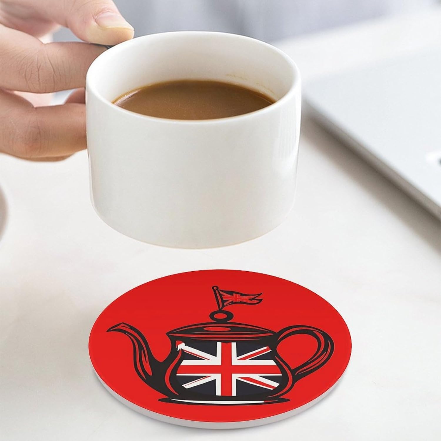 coasters,coasters set of 4,coasters set of 6,cute coasters with Funny Pattern Printed Ceramic Coasters with Cork Base Cup Holder Absorbent for Drinks Coasters Round Tabletop Protection Mat Decorative Cute Coffee Cup Beverage Coasters