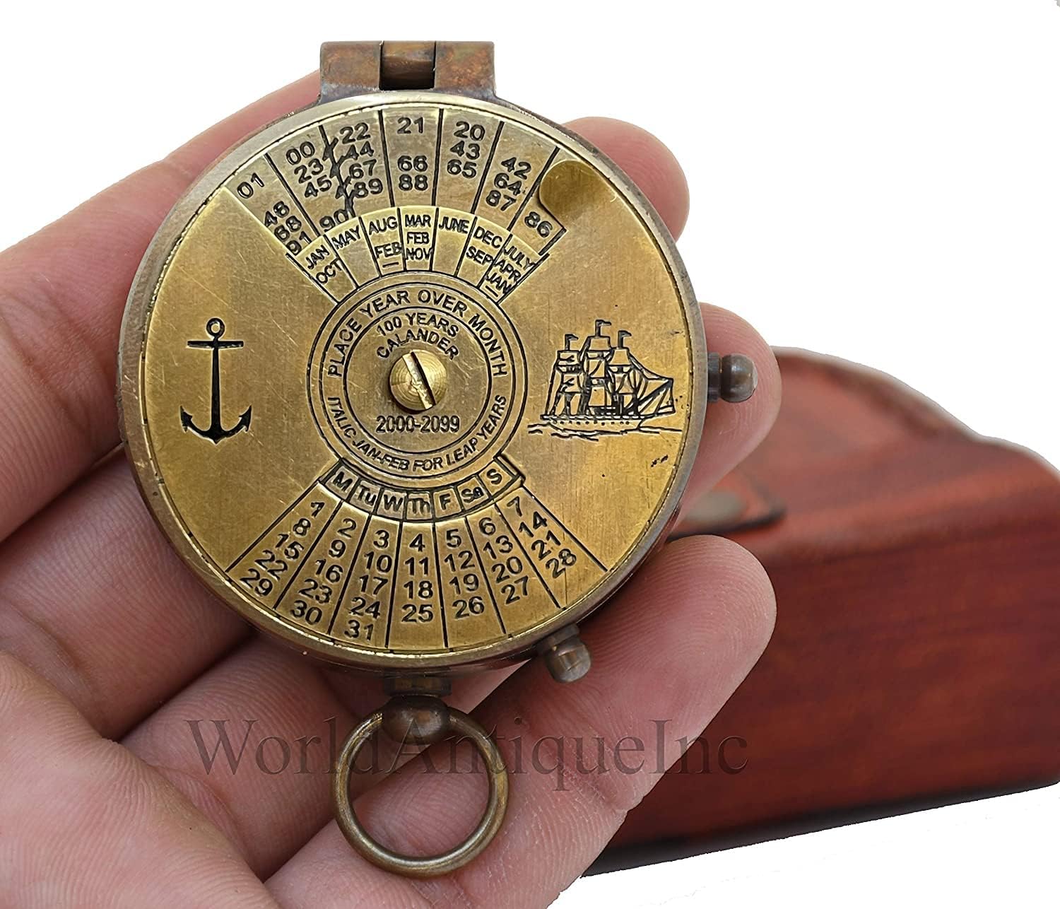 WORLD ANTIQUE INCORPORATION This solid brass Medium-Sized Pocket Compass is standard pocket compass size but still fits easily in your pocket. It has a small lever on the side of the compass that operates a needle lift mechanism to protect the compass bearing. The compass is the diameter of a standard pocket compass, Size-Compass: 50mmX18mm, Leather Case:2.5x2.5x1inches.. This compass is beautifully crafted from solid brass. Engraved Brass to My Man/to My Husband/to My Boyfriend/Back to me/My Best Man/Fathers Day/Mothers Day/Valentines Day/Christmas Day Gifts