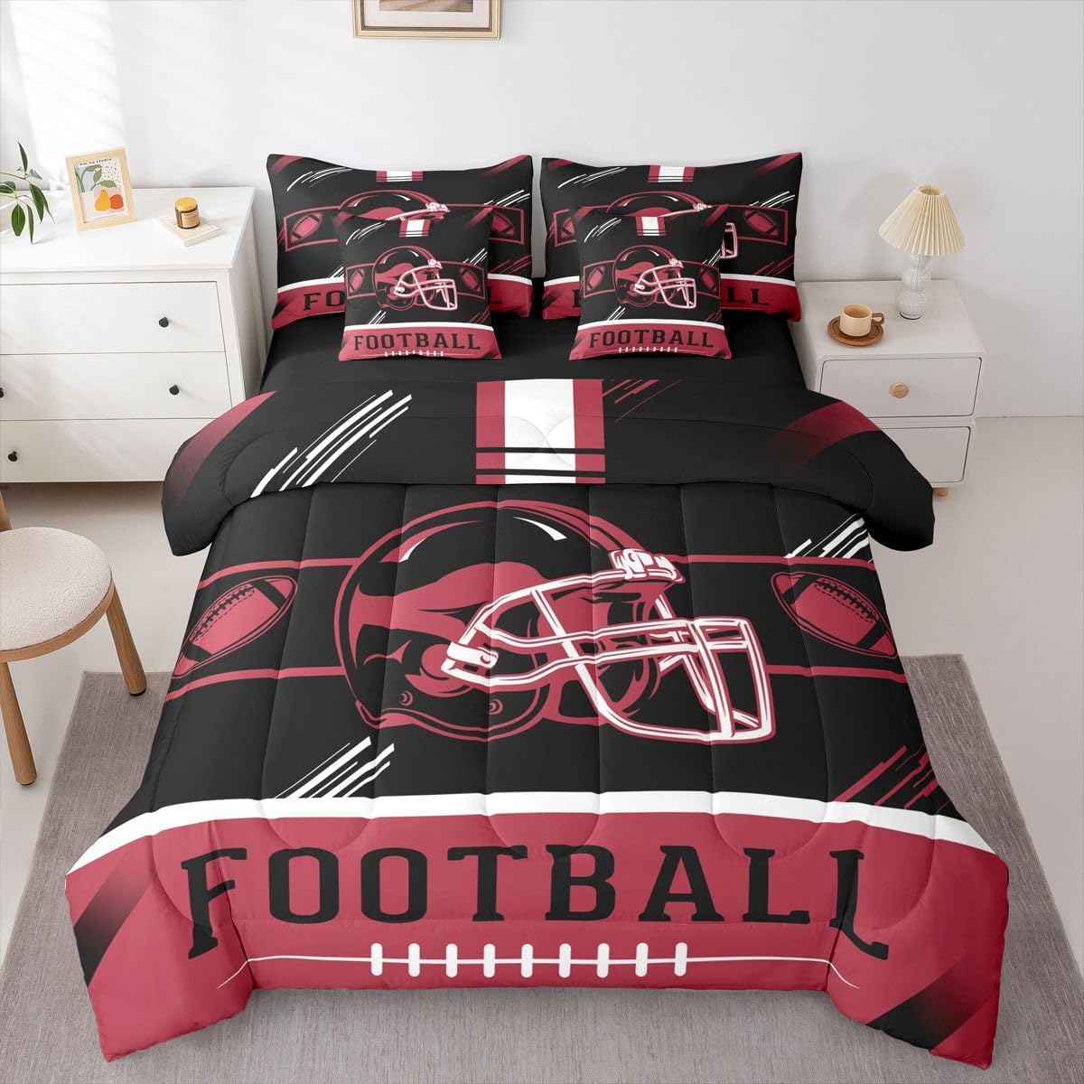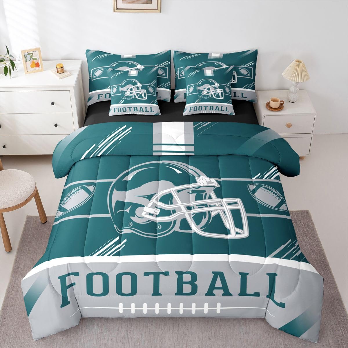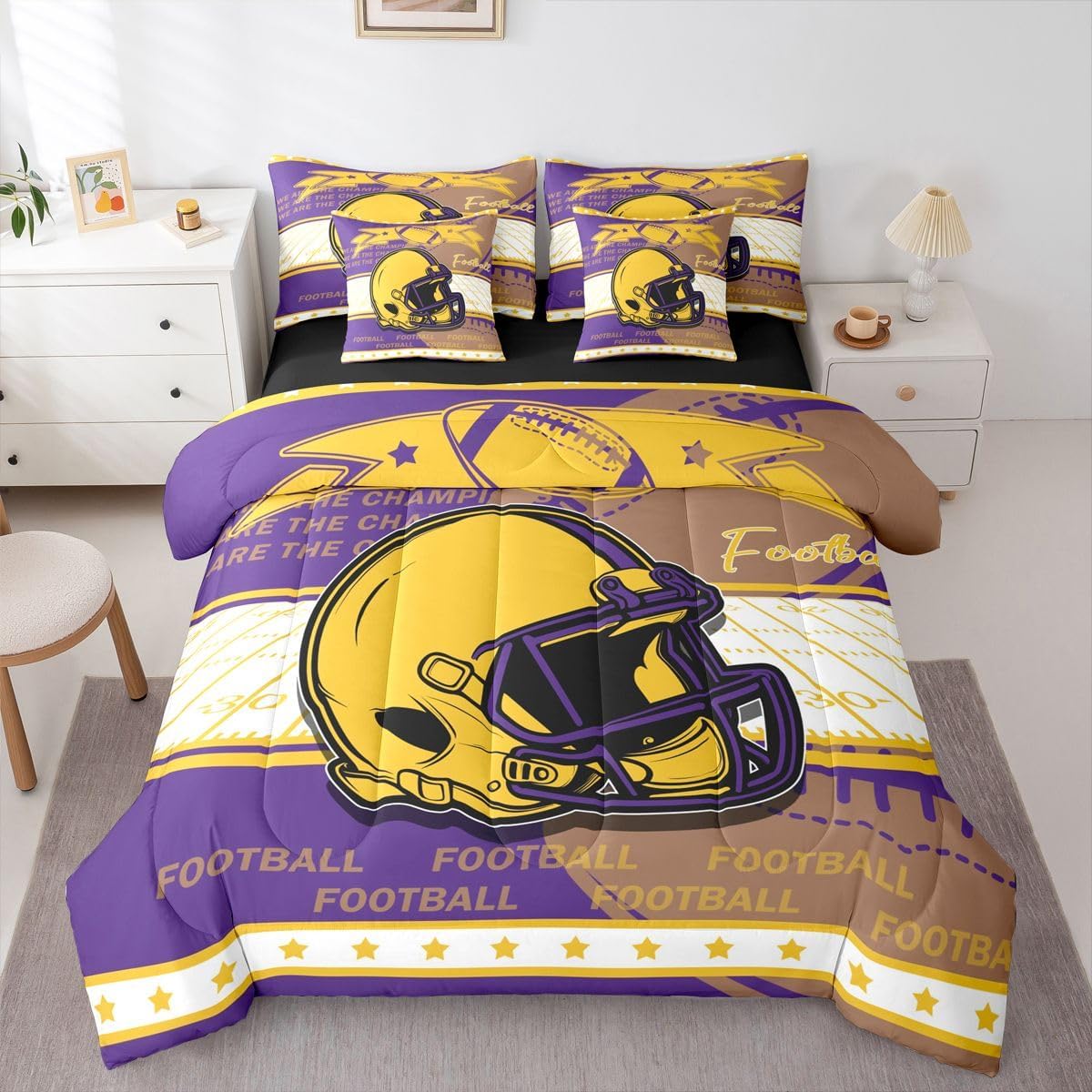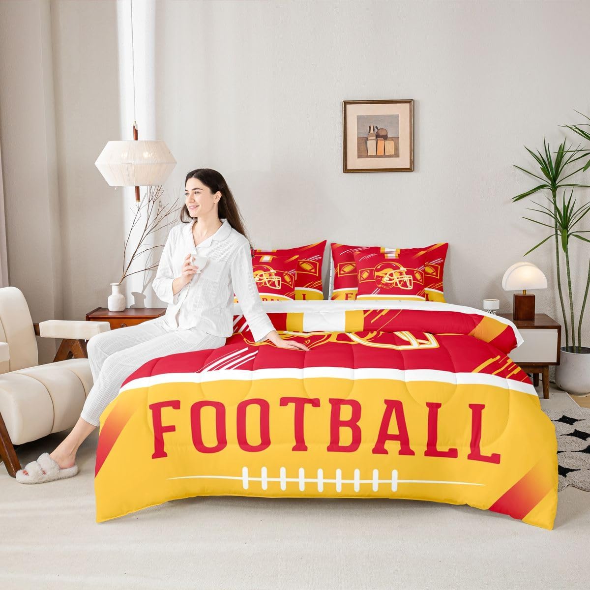 This unique modern 7 Pieces bedding set will enliven your room and bring freshness to it. Size Twin Size bed in a bag includes 1 Comforter 68"x90", 1 Flat Sheet 67"x96", 1 Fitted Sheet 39"x75"x16", 2 Pillowcases 20"x30" and 2 Throw Pillow Covers 18"x18". Full Size bed in a bag includes 1 Comforter 79"x90", 1 Flat Sheet 81"x96", 1 Fitted Sheet 54"x75"x16", 2 Pillowcases 20"x30" and 2 Throw Pillows Covers 18"x18". Queen Size bed in a bag includes 1 Comforter 90"x90", 1 Flat Sheet 102"x90", 1 Fitted Sheet 60"x80"x16", 2 Pillowcases 20"x30" and 2 Throw Pillows Covers 18"x18". King Size bed in a bag includes 1 Comforter 104"x90", 1 Flat Sheet 106"x90", 1 Fitted Sheet 78"x80"x16", 2 Pillowcases 20"x36" and 2 Throw Pillows Covers 18"x18". Material Polyester Great 7 Pieces Bedding for Room Decor Perfect choice for room decor such as bedroom, guest room, condo house, hotels, inn, spa, lounge, sauna, apartment building, and other spaces of home, dormitory, hotel, farmhouse and country house. Warm Reminder There is no difference in the product itself, but colors may appear slightly different to each user due to individual monitors. Please measure your bed properly and make sure you pick the right size. Attention to Detail for Your Satisfaction While we strive for perfection in showcasing our bedding sets, please note that actual colors may vary slightly due to individual monitor settings. Ensure to measure your bed accurately to choose the correct size for an impeccable fit and experience.
