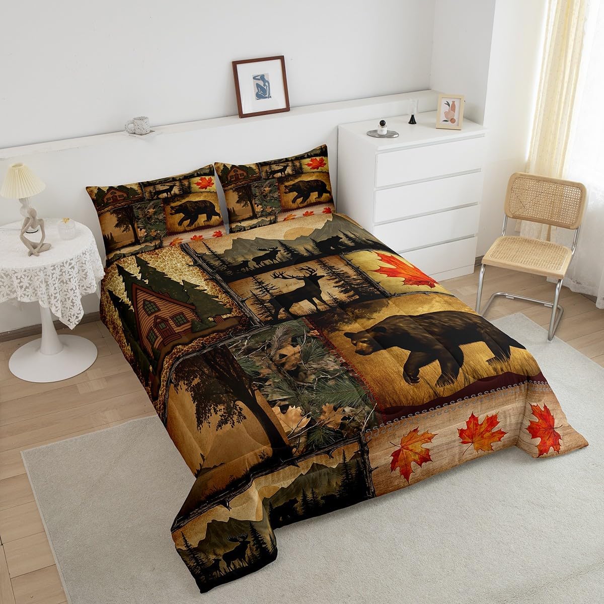 Size Information Toddler size: 1 Down Comforter 42"W x 58"L, 1 Quilted Pillowcase 30"W x 20"L. Twin size: 1 Down Comforter 68"W x 90"L, 1 Quilted Pillowcase 30"W x 20"L. Full size: 1 Down Comforter 79"W x 90"L, 2 Quilted Pillowcases 30"W x 20"L. Queen size: 1 Down Comforter 90"W x 90"L, 2 Quilted Pillowcases 30"W x 20"L. King size: 1 Down Comforter 104"W x 90"L, 2 Quilted Pillowcases 36"W x 20"L. Versatility We have many kinds of styles for you to choose. You can easily find a product that suits the style of your room. The item is not only Suitable for your home, bedroom, guest room, living room, or rv, your families, friends, relatives, boyfriend,girlfriend. Modern Design The luxury aesthetic comforter set is made reactive printing and dyeing process. The pattern is clear, the color is bright, which will not fade after repeated washing. Personalized As a manufacturer of digital printed home textiles, we follow current trends and bring you the latest and stylish home textile products. The item will make the room decorated in exquisite taste. We sincerely hope you will love the bed set.