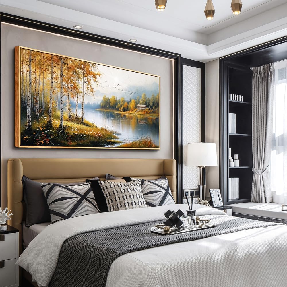 • Stunning Wall Decor: This beautiful framed canvas wall art features a captivating(Lakeside Landscape Wood Framed)design, perfect for adding a touch of elegance and vibrancy to any living space