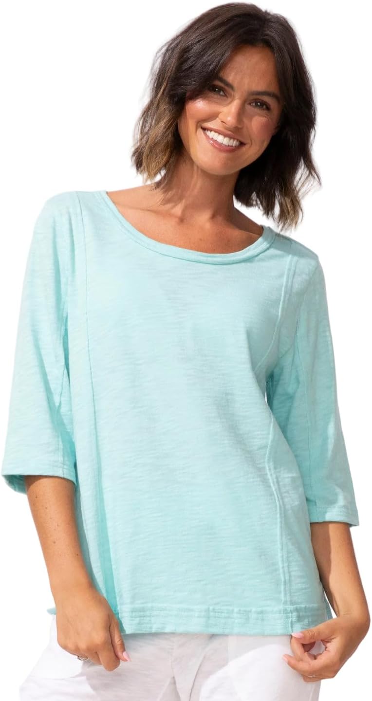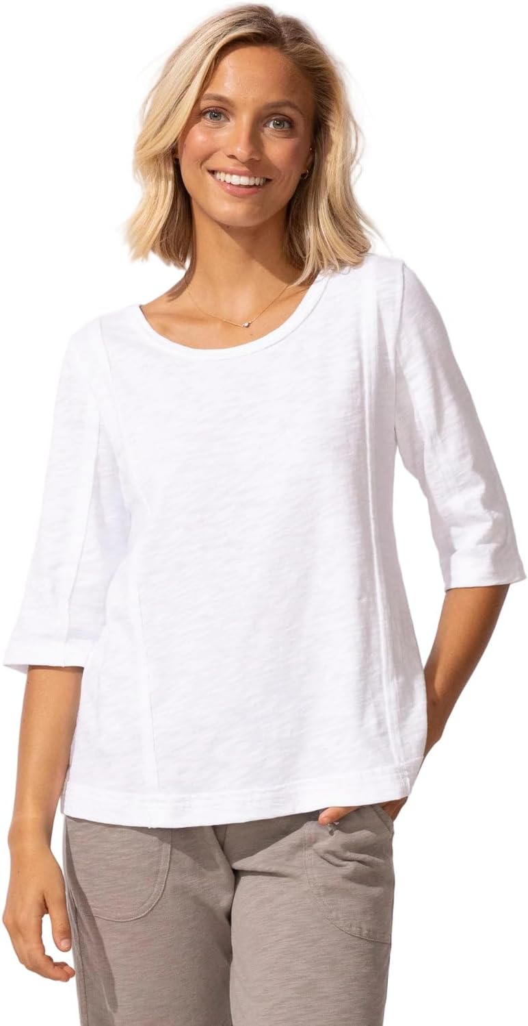 The Escape by Habitat Women’s Cotton Shirt - 10026 offers everyday comfort with an elevated, polished look. Crafted from premium Peruvian cotton, this women’s tee delivers exceptional softness, breathability, and long-lasting durability. Designed with a flattering scoop neckline, elbow-length sleeves, and subtle shaping through the waist, it provides a relaxed yet feminine fit. Cover-stitched seam details and side slits add modern style and ease of movement, while slub-textured yarns create a unique, lived-in finish. This versatile Escape by Habitat women’s top is perfect for casual wear, travel, lounging, or layering year-round.