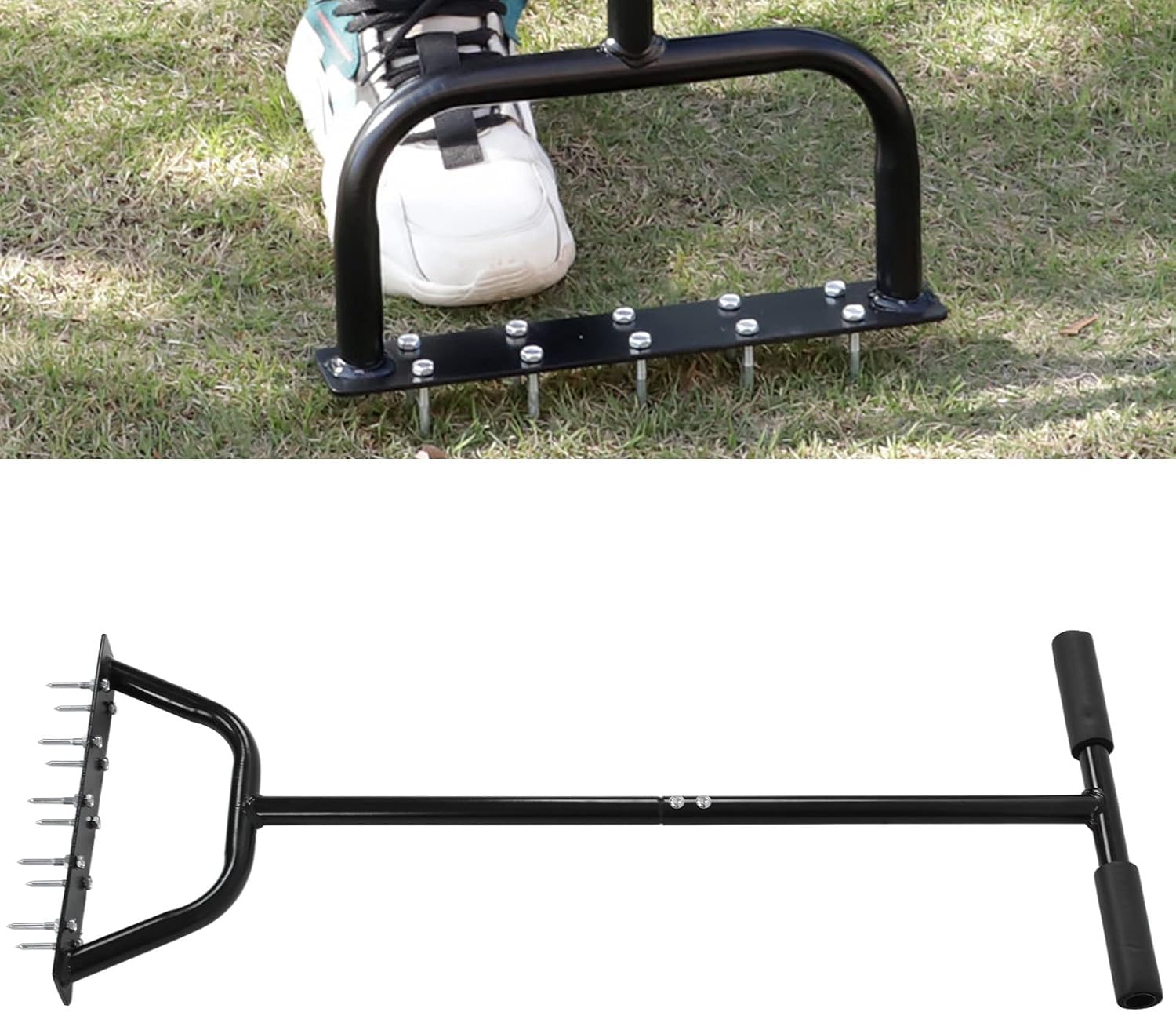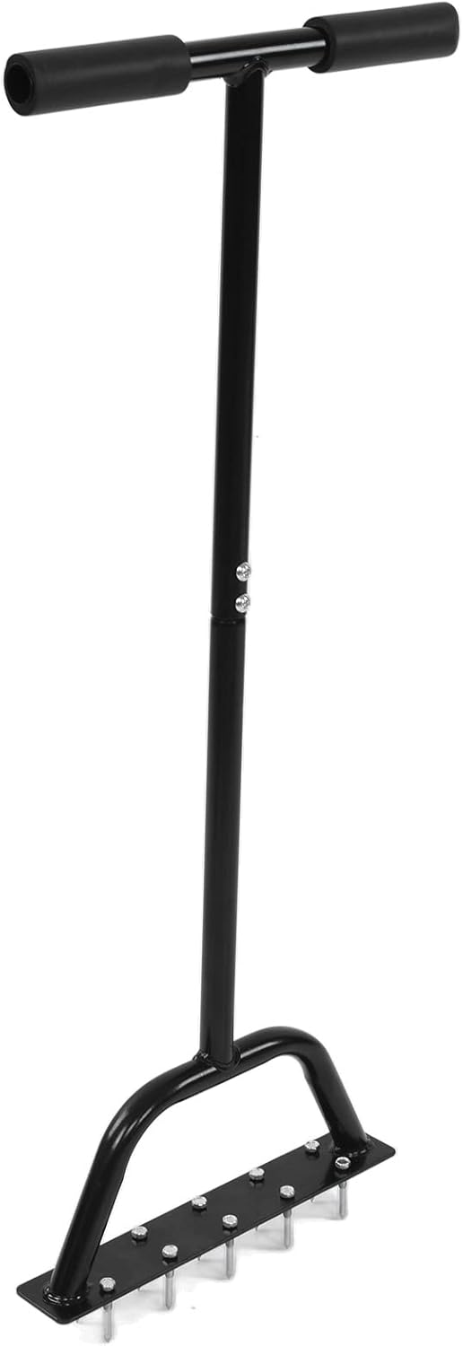 1. Strong Soil Loosening Effect: The garden tool has thickened and widened pedals, with strong soil loosening effect and excellent performance.2. Simple There is no need to bend down to loosen the soil, and the professional garden tool is simple and light to use.3. Materials: Made of carbon steel, it is strong, , not easily damaged, and can be used for a longer time.4. Applicable Scene: Adopt sophisticated production technology and professional design, suitable for soil turning and loosening in gardens and gardens.5. Beautiful Appearance: With fine workmanship, this garden tool has a beautiful appearance and is an excellent choice for loosening soil in lawn orchards.Spec:Item Type: Hand AeratorMaterial: Carbon SteelT Shaped Handle Size: Approx. 324 x 324mm / 12.8 x 12.8inAperture: Approx. 23mm / 0.9inTurning Size: Pole Length: Approx. 343mm / 13.5in, Bottom Length: Approx. 300mm / 11.8in, Height: Approx. 50mm / 2.0inLong Screw Length: Approx. 45mm / 1.8inSuitable For: Soil Turning and Loosening in GardensWeight: Approx. 1500g / 52.9ozpacking list:1 x Handle1 x Head10 x Long Screw10 x Nut1 x Wrench3 x Short Screw