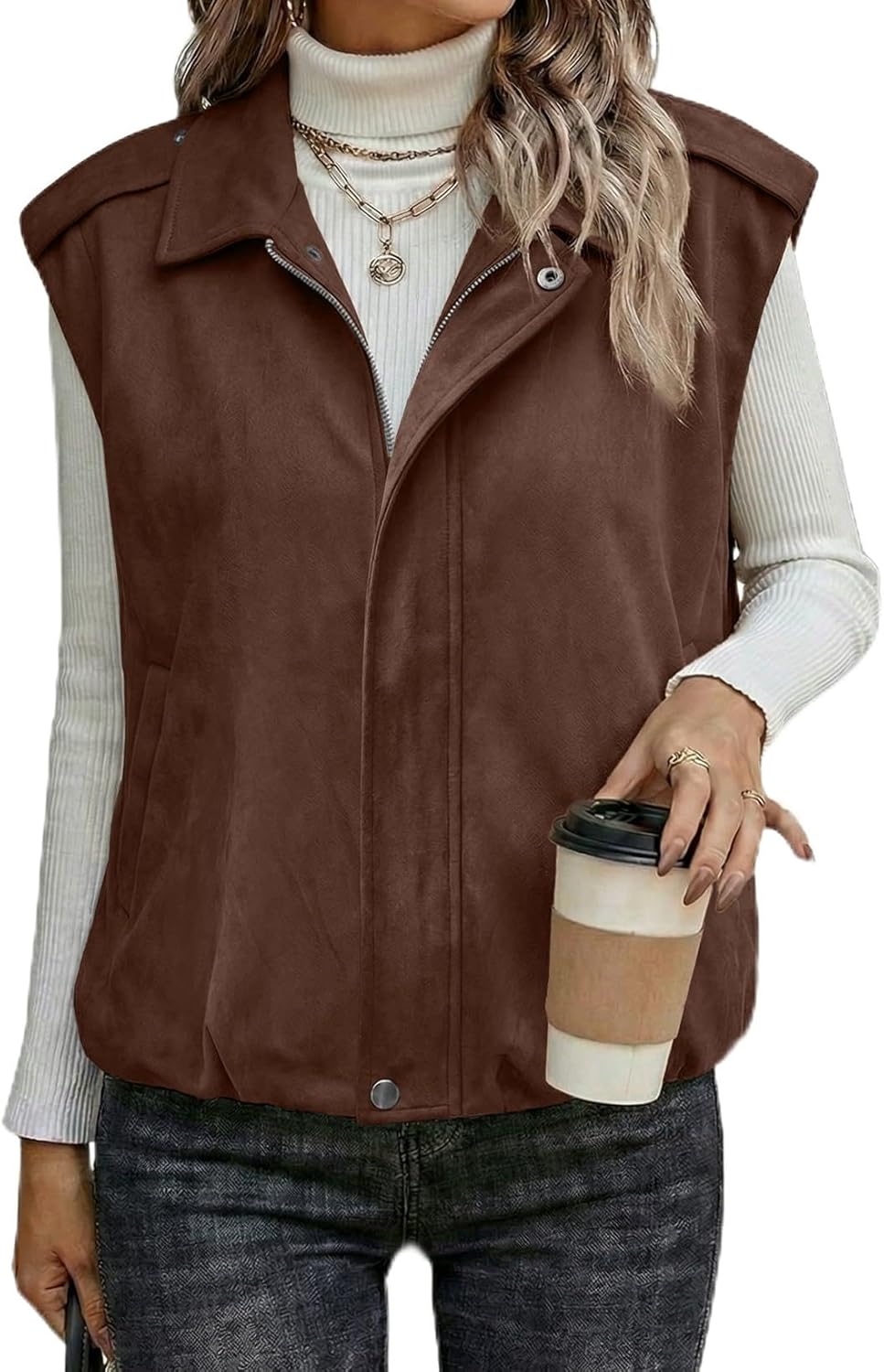 | Item Length Description | This is a fux suede vest. Its dimensions are: length 15 cm, width 10 cm, and height 2 cm. |