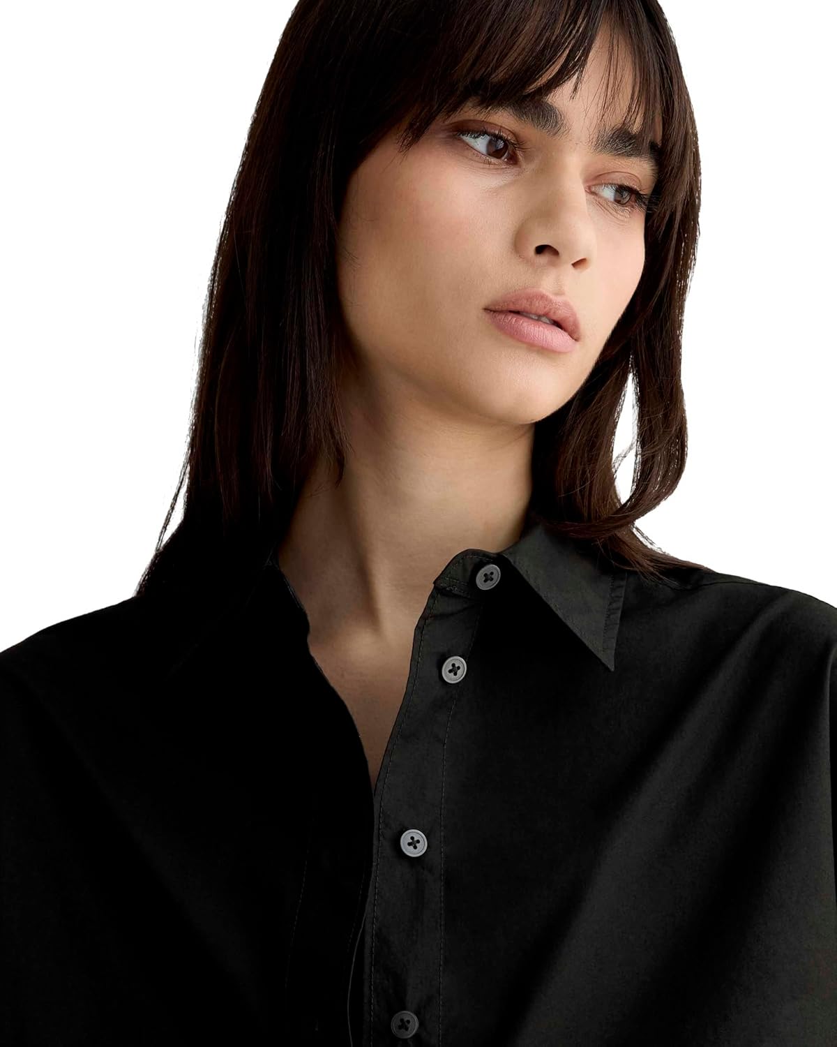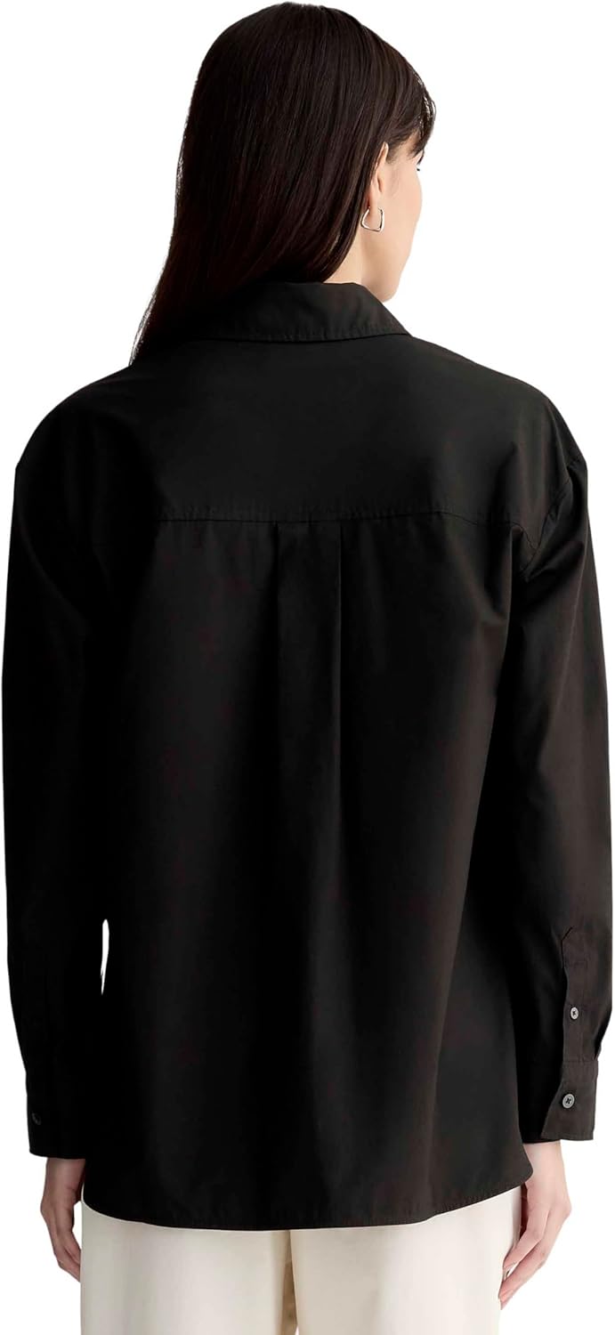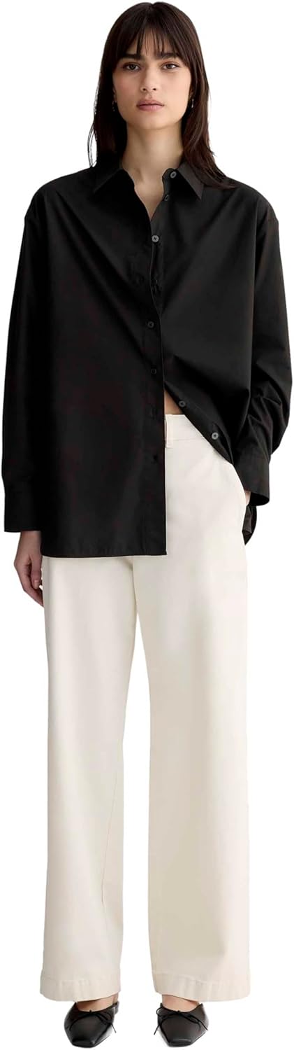 An oversized button-front shirt that looks borrowed from the boys but lives in your everyday rotation. Made from lightweight, ultrasoft organic cotton with a crisp, breathable feel that stays comfortable from morning commute to evening unwind. The relaxed boyfriend fit features a roomy silhouette, classic collar, long sleeves, and a back yoke for a laid-back look that still feels put together. Clean button placket, shirting cuffs, and tailored seams make it easy to dress up for work or down with denim. Built with quality materials and thoughtful construction you'll reach for season after season.