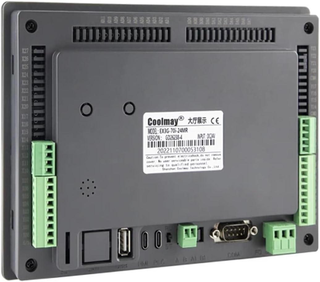 PanelsEX3G Series 7 Inch 24VDC NPN Output HMI All In One with EthernetModel:EX3G-70Ki-24MT-4AD4DA-A4-A4-485P-WPSpecification:7", 12DI/12DO, transistor outputs4 analog inputs for 4-20mA4 analog outputs for 4-20mA1*Ethernet on 1*RS485 on ==========Model Number : EX3G-70Ki-24MT-4AD4DA-A4-A4-485P-WPMotor Type : MotorSeries : EX3GOutput : TransistorSize : 7 inchEthernet : built on