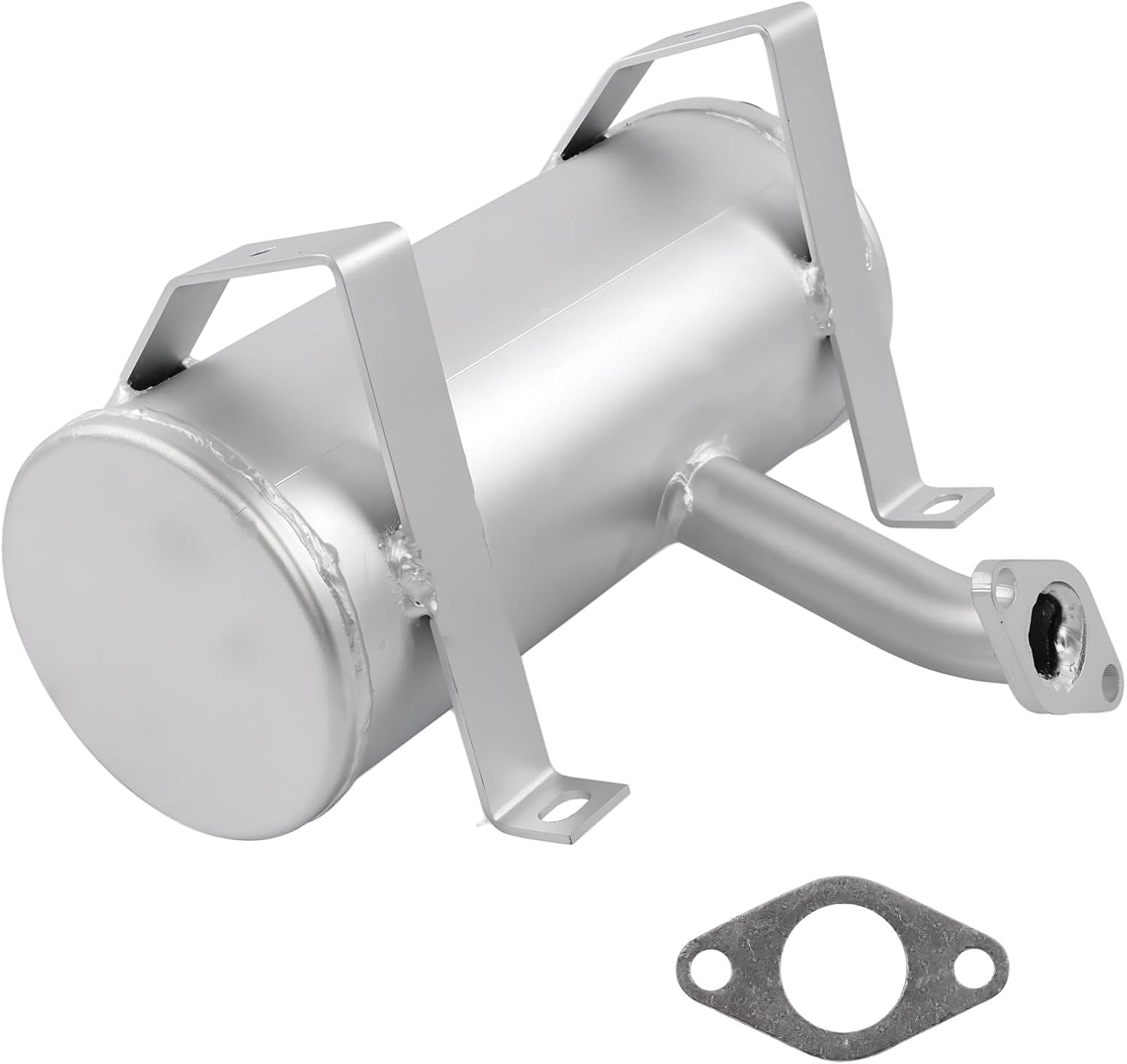 Product Description:Why Choose Us?Engines are powerful and noisy, and without an effective muffler, they can cause you a noise nuisance. Our exhaust muffler is a precision-engineered mounting point to ensure secure attachment and alignment. Ensuring reduced engine noise.1. Engine muffler silencers are coated with heat-resistant finishes made from iron to prevent rusting or corrosion, which is especially important for outdoor equipment exposed to the elements.2. The muffler helps to direct exhaust gases out of the engine. While the engine is equipped with a combustion system that burns fuel efficiently, the muffler plays a role in reducing harmful exhaust emissions.Fitment:Exhaust muffler Compatible with John Deere lawn tractor LT133, LT150, LT155, LTR155, LTR166 with Kohler 15HP EnginePart Number: AM122848, AM131220, Gasket: M92365