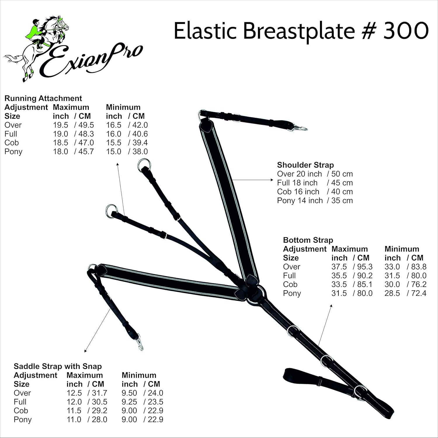 Optimize Stability and Performance with the Exion Elastic BreastplateThe Exion Horse Elastic Breastplate is meticulously engineered for equestrians who refuse to compromise between saddle stability and equine comfort. Specifically designed for show jumping, eventing, and intensive schooling, this breastplate ensures your saddle remains perfectly positioned while allowing your horse total freedom to stretch and move.Superior Flexibility and Comfort Unlike rigid leather-only designs, our unique elastic band system adapts to your horse’s natural motion. This prevents the tack from tightening excessively as the horse jumps or extends, reducing tension and fatigue. The soft padded bottom straps further protect the sensitive shoulder and chest area from chafing and pressure sores.Technical Precision for the Competitive Rider Crafted from premium drum-dyed leather and fitted with stainless steel hardware, this breastplate is built to endure. The removable running martingale attachment provides the versatility needed to switch between training and competition settings instantly, while the quick-release snaps ensure a hassle-free experience at the trailer or in the barn.Why Professional Riders Trust Exion:Target Audience: Ideal for Jumpers, Eventers, and Hunter riders seeking high-performance stability.Unique Edge: Combines the durability of vegetable-tanned leather with the flexibility of high-tension elastic.Materials: Marine-grade stainless steel buckles and hardware for a rust-proof, polished finish.Craftsmanship: Handmade and hand-finished for a refined, professional-grade equestrian look.📐 Sizing & Fit: Fully adjustable to fit Cob, Full, and Warmblood sizes. Available in Black, Choco Brown, and Reddish Brown.