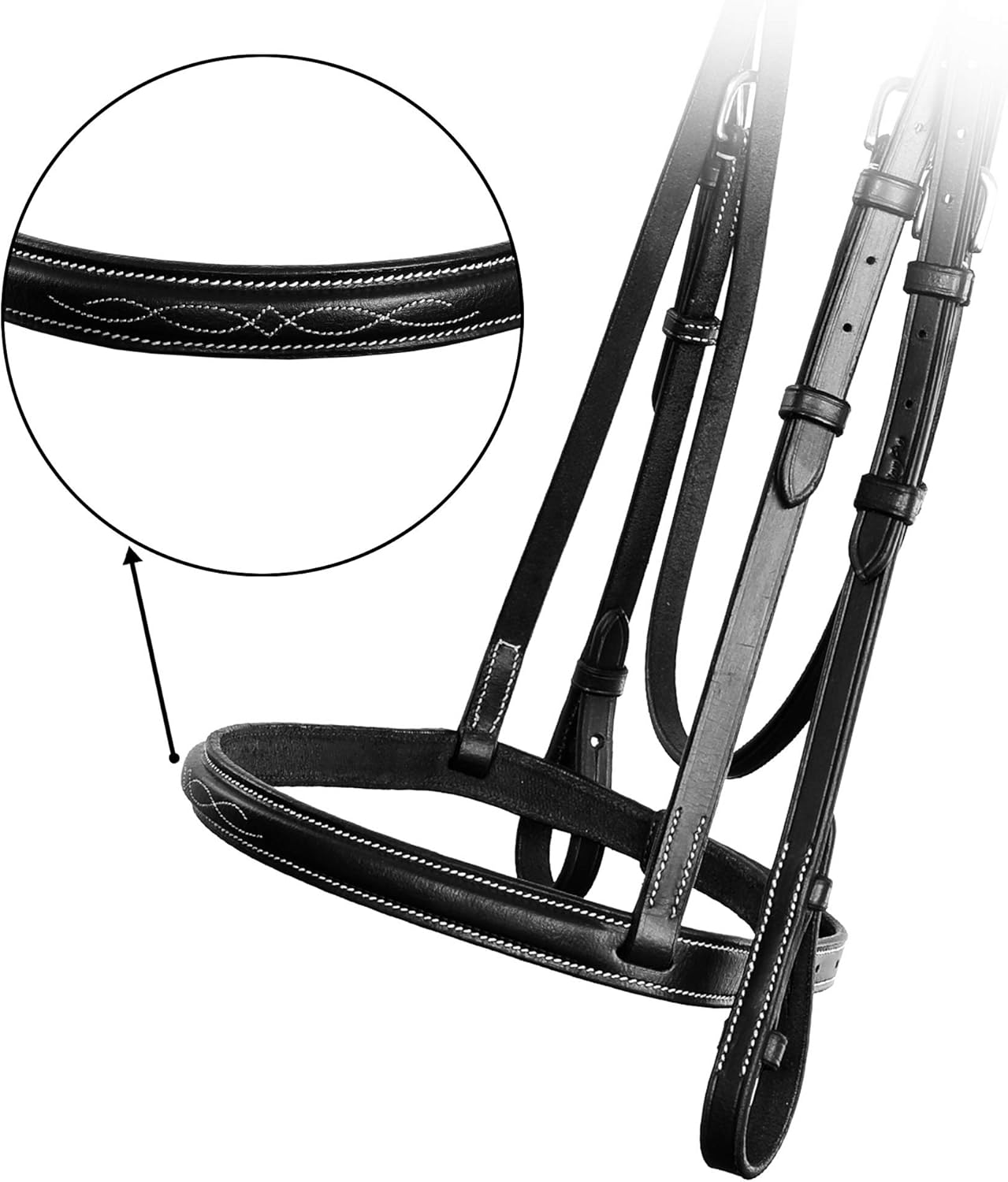 Upgrade your tack with the Exion Hunter Bridle with Laced Reins — a premium English bridle crafted for riders who value traditional style, superior comfort, and lasting performance. Whether you're in the show ring, training, or schooling, this bridle is built to perform and impress.Made from high-quality European English leather, the bridle features a raised, fancy-stitched browband and noseband for a refined, classic look. Meticulous hand-stitching with heavy-duty cotton thread (10–12 stitches per inch) ensures a polished finish and long-lasting durability.Designed with both horse and rider in mind, this bridle offers even pressure distribution for improved comfort. Stainless steel buckles provide rustproof strength and a clean, polished appearance. The included laced reins offer excellent grip and come with martingale stoppers for added control.Available in black and brown, and in multiple sizes — Pony, Cob, Full, and Warmblood — the Exion Hunter Bridle is tailored for a perfect fit. It features slim 1/2" cheeks and adjustable straps to ensure proper balance and security.Soft, supple, and show-ready, this bridle is easy to maintain with regular leather care. Whether you're riding daily or preparing for competition, it's the ideal combination of value, elegance, and function.
