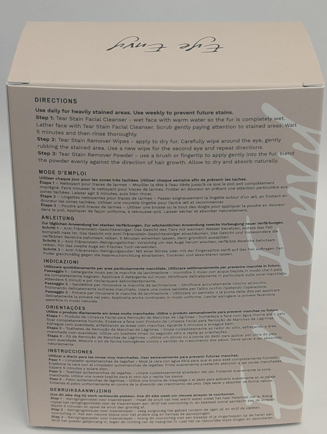 | Included Components | Tear Stain Powder, Tear Stain Wipes 60-count, Tearless Facial Cleanser |