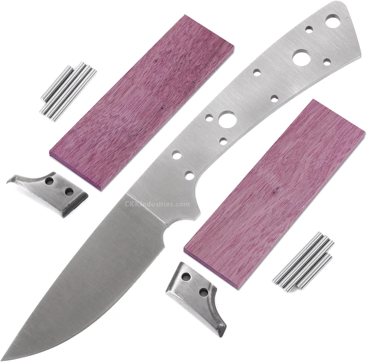 This is a full tang knife blank design that can be built in multiple ways. Fully bolstered and pinned, it'll make a great skinner blade. With a full handle treatment, it'll make a great concelable neck or EDC boot knife.This version is the combo kit. It comes complete with blade, bolsters and pins, and includes pre-machined Walnut handle material for easy kit completion. Invest a fun afternoon in your shop or study and create an excellent knife that you will be proud of for a lifetime. Our pre-machined knife handle scales are slightly thicker and larger in diameter than the handle tang they are designed for. This allows for proper sanding, shaping and artistic embellishment. They are also undrilled to allow the builder precise placement control and to maximize fastening options. This model includes stainless steel bolster and handle pins. If you do not have a scroll saw to use for creating the required handle shape, or you just want to begin from an easier starting point, using these pre-machined scales will help you insure that your kit completion will be smooth and successful. Specifications Blade Steel: 440C Blade Finish: Satin (Cryo-Treated for Optimum Blade Performance) Blade Length: 2.75 Inches Overall Length: 6.50 Inches Blade Width: .875 Inch Thickness: .125 Inch Tang Holes: (2) .235 Inch Tang Holes: (6) .095 Inch Handle Pinstock Included: Yes Thong Hole: (1) .196 Inch Handle Material: Walnut (pre-machined) Gift Boxed: Yes Designed in USA