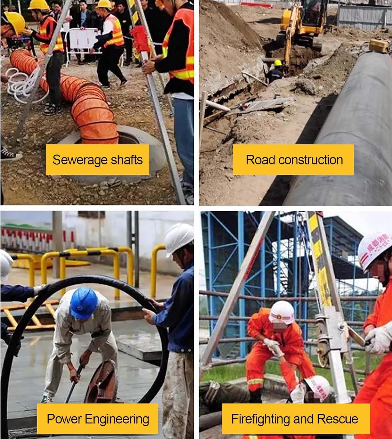 -Emergency Firefighting Rescue Rope System: Specification: Material: Aluminum Adjustable tripod legs: 1.25-2.15m/4.1-7.1 ft Winch: 1200lbs(544.3kg)/1800lbs(816kg)/2600lbs(1179.3kg) Man winch continue efficiency: 8:1 Manual handle force: ≤500 N Rated load: 1200LBS winch safe load 300KG/661LBS; 1800LBS winch safe load 450KG/881LBS; 2600LBS winch safe load 500KG/1102LBS Features: The confined space kit can bear a large load capacity. This tripod storage is providing safe access and emergency rescue. The ring protection chains make the safety tripod non-slip and more stable. Retractable tripod, the height can be adjusted according to the working situation. For lifting, lowering and positioning of personnel and materials within confined space applications. It is lightweight and foldable, making the tripod convenient to store and transport. Package Include: 1 × confined space rescue tripod Tips: Manual measurement products may have dimensions of a few centimeters of difference, please understand. There may be some differences between the image and the product due to display and lighting reasons, please refer to the actual product.