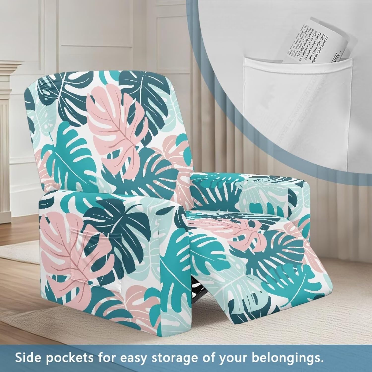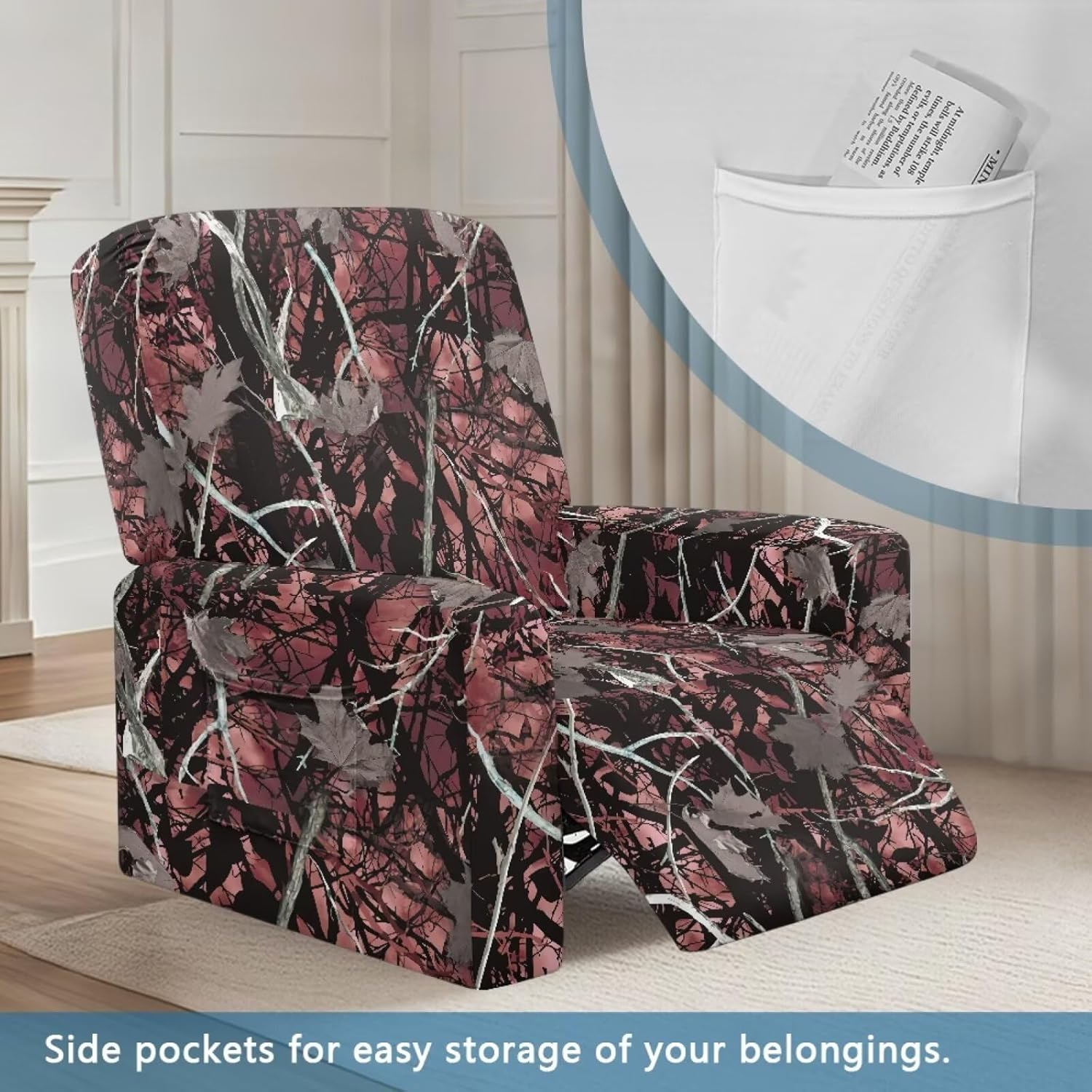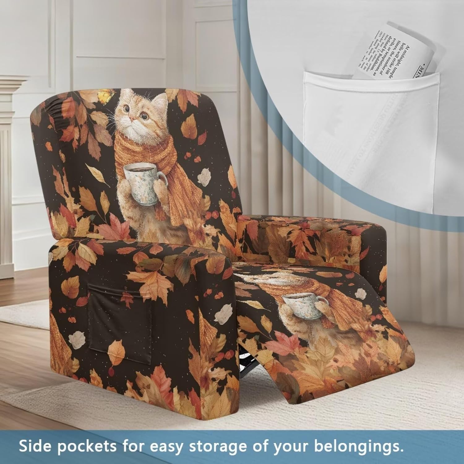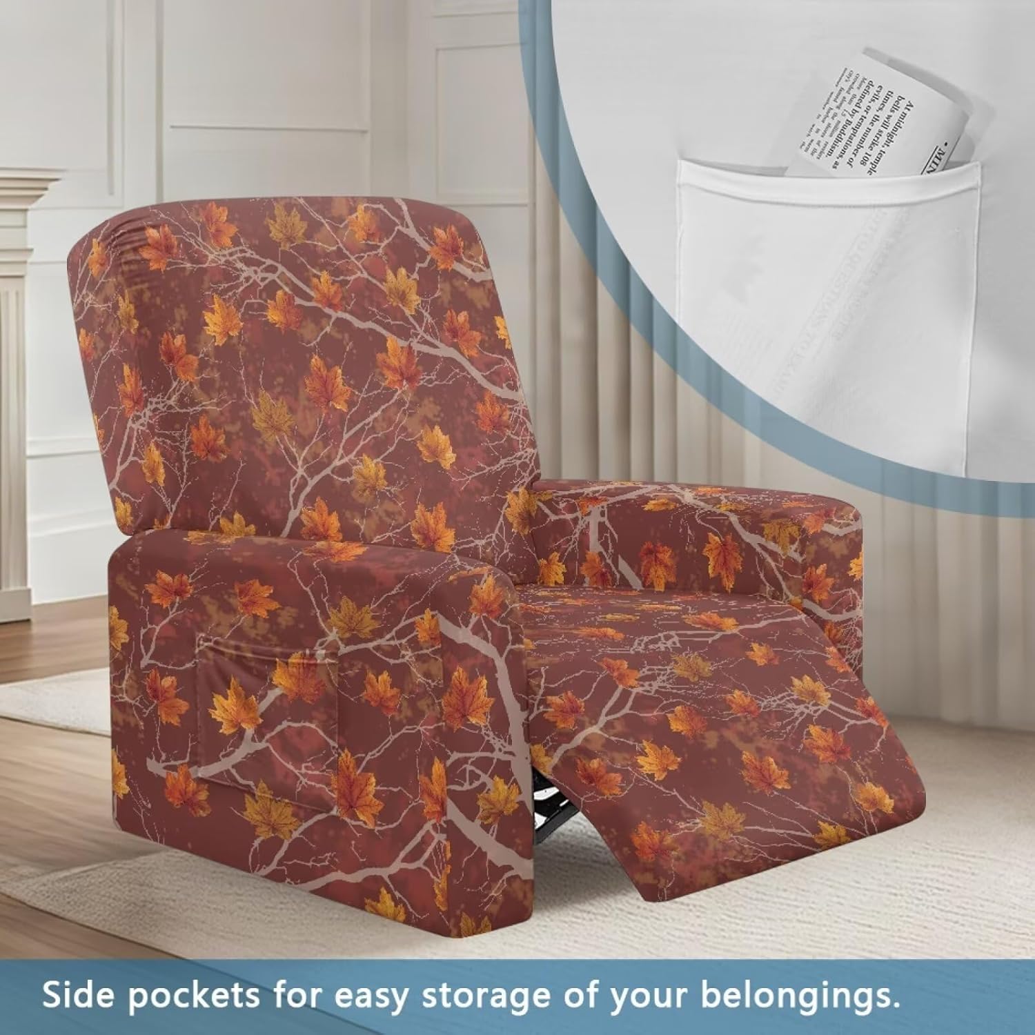 Package included:1x YECARYPOD Recliner Slipcover Recliner Chair Cover with Side Pocket Product: -Material:Stretch Polyester & Spandex,soft,breathable and machine washable -Vivid Stylish Color and Print Design,halloween,fall,thanksgiving,christmas,boho,tribal aztec,American flag,leoparad print,dog paw,sunflower,butterfly,etc -Easy to install & Care -Elastic Band and Loops Warm Tips: -Due to manual measurement, there may be 1-2cm deviation exist. -Actual color may be slight difference between the monitor display picture because of the light brightness. -If you have any questions, please feel free to contact us. We will reply you within 24 hours.