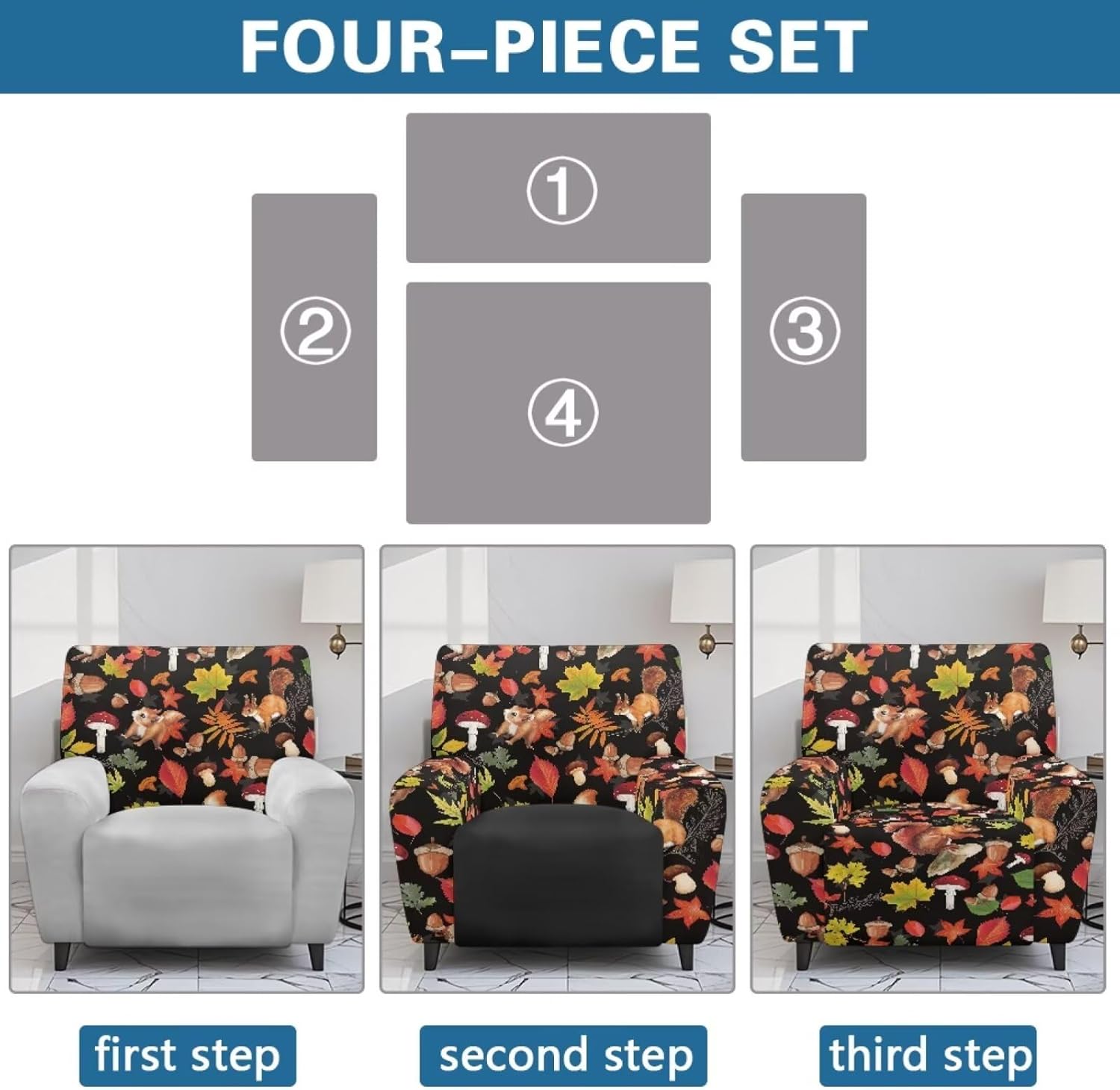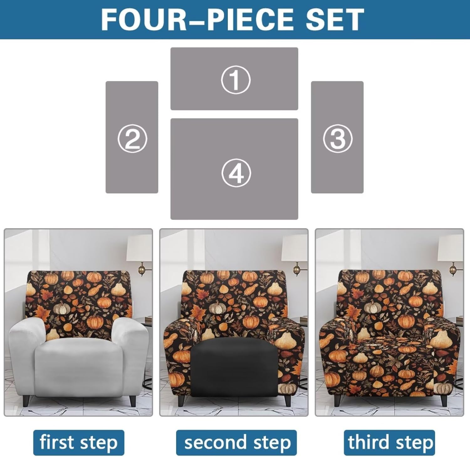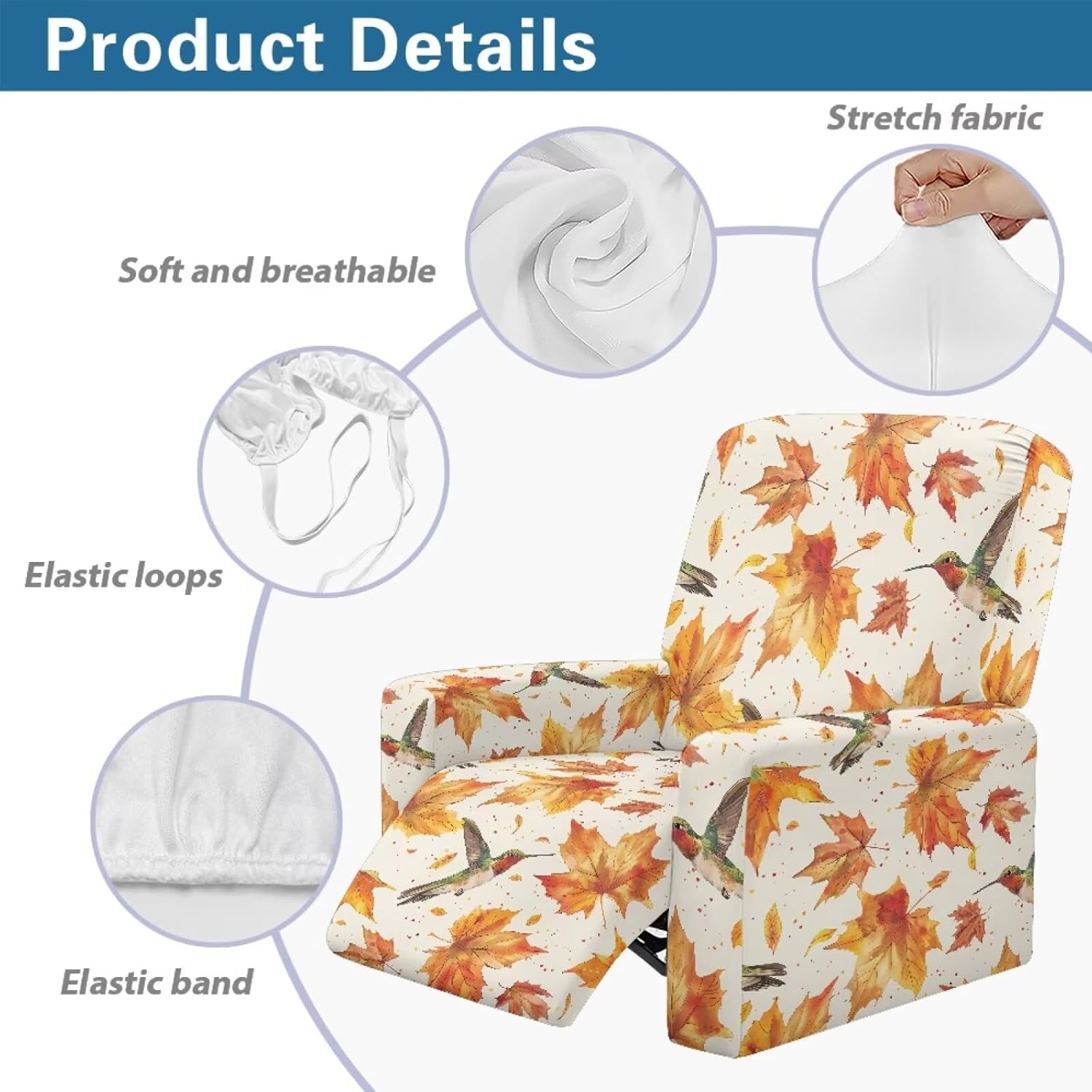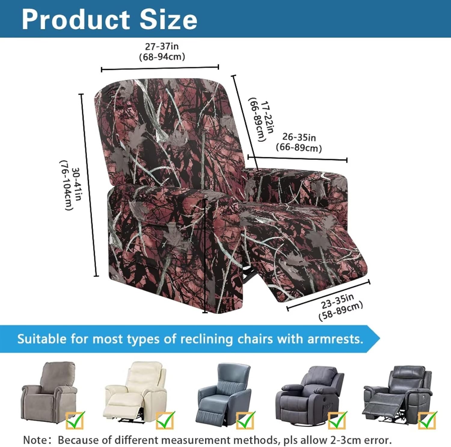 Package included:1x YECARYPOD Recliner Slipcover Recliner Chair Cover with Side Pocket Product: -Material:Stretch Polyester & Spandex,soft,breathable and machine washable -Vivid Stylish Color and Print Design,halloween,fall,thanksgiving,christmas,boho,tribal aztec,American flag,leoparad print,dog paw,sunflower,butterfly,etc -Easy to install & Care -Elastic Band and Loops Warm Tips: -Due to manual measurement, there may be 1-2cm deviation exist. -Actual color may be slight difference between the monitor display picture because of the light brightness. -If you have any questions, please feel free to contact us. We will reply you within 24 hours.