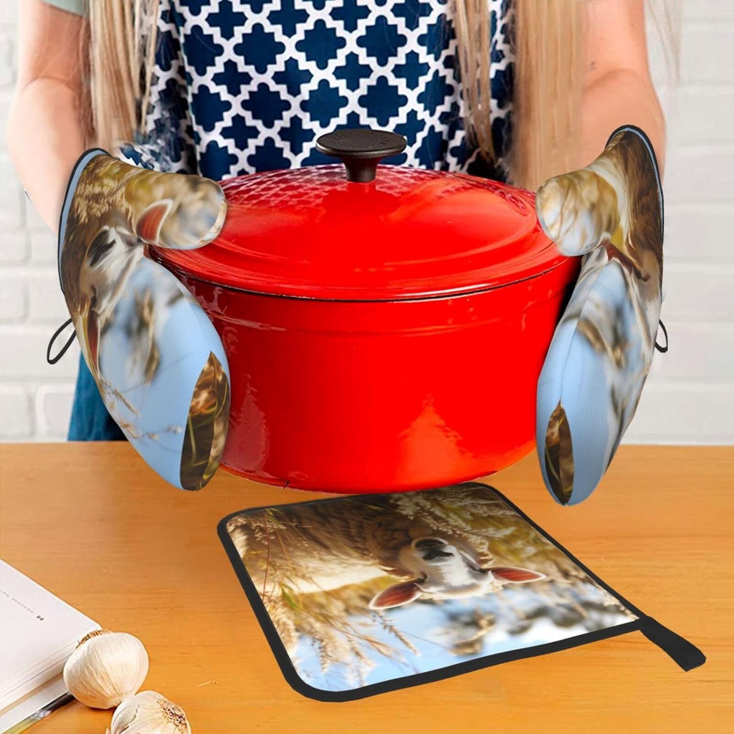 • Versatile Kitchen Use : Farm animal print Oven Mitts and Pot Holders Sets, This versatile set is fit for kitchen lid removal, microwave cooking, outdoor grilling, and more. Equip yourself with the flawless tools to handle any cooking task with confidence and ease