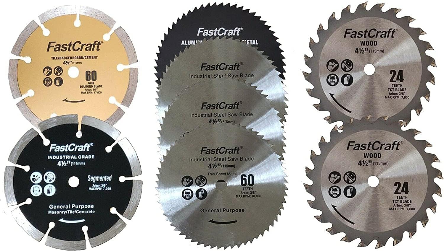 All Industrial & PRO Grade. Contents: (1) FastCraft Mini Circular Saw Corded Electric (7 ft) 9.0 Amp PEAK Super Powerful Motor (Rated 5.8 Amp): Delivers up to 3,500 RPM for fast cutting into a wide range of materials. Ergonomic Design: Operated with one hand, reducing the burden for your work; compact and lightweight design for high maneuverability and easy handling. The ergonomic soft grip handle provides comfort and balance for superior control. Fast/easy blade replacement Auxiliary Cutting & More Precise: Laser guide Included FREE. Adjustable/ Flexible: 90° Straight Cut & 45° Bevel Cut Available. By loosening the angle locking lever, you can switch your cutting angle freely from 0° to 45°. The adjustable depth locking lever provides maximum cutting depth up to 1-11/16" (42.8 mm) at 90° and 1-1/8" (28.0 mm) to better suit your sawing needs. Clean: Featuring a built in dust collection system and easy disposal system. Safety: Extremely durable tool design with steel shoe to withstand rough job site conditions. Lock off switch and electronic motor brake for additional control and work safety. Cold cutting so no sparks and work piece remains cool. 8pc sorted 4-1/2" saw blades. Also Included: (1) Allen key for saw blade change (1) Dust pipe (1) Edge guide. User manual also can be downloaded from our website.