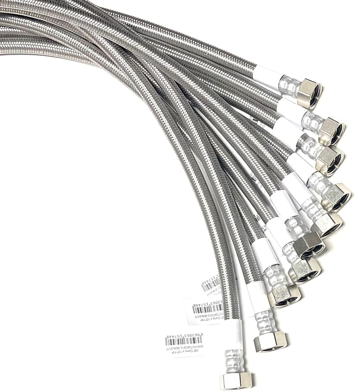 The Shark Industrial faucet connector features a 3/8-inch comp x 1/2-inch FIP nut connection. It is built to last with premium non-toxic PVC core with 304 stainless steel braided outer cover for strength and protection. Unlike other grade of "stainless" steel, 304 is true stainless and rust proof. Our connector hoses are built with high quality which exceeds industry standards like UPS, NSF61, WRAS, and RoHS