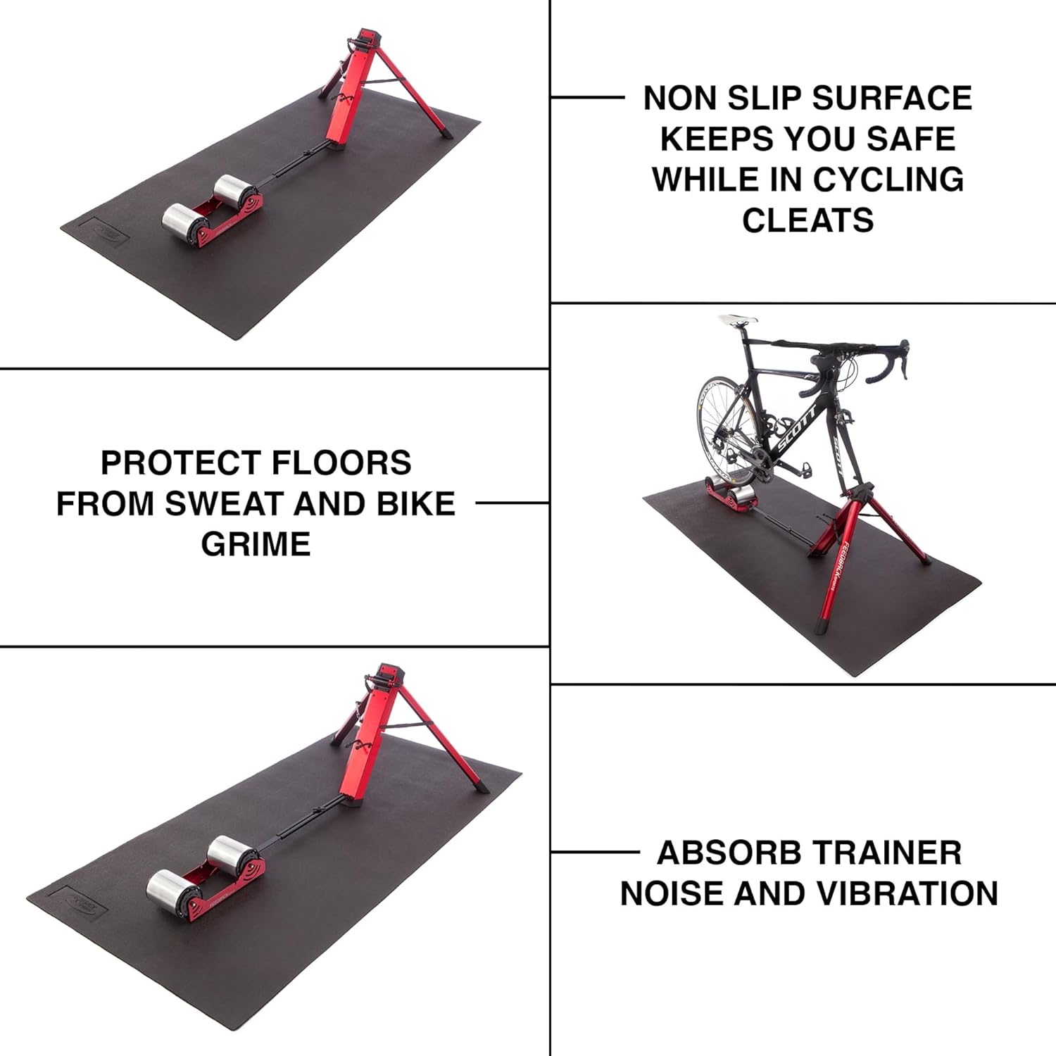 Of course you love your Omnium Trainer, but you’re left wondering how you could possibly love indoor cycling training even more. Easy, our non-slip and water-repellent (aka sweat) Floor Mat is designed to keep you safe and protect your floors while in your cycling cleats indoors. And because your cycling training plan asks for incredibly intense efforts, the Floor Mat can ensure firm contact with the ground and prevent movement during leg-busting intervals.