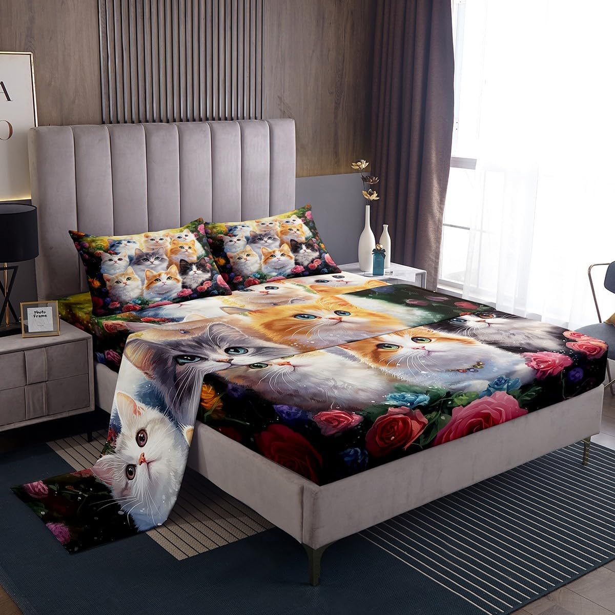 Our bedroom decor bed sheets set look with the vivid stylish and elegant print specifications: Twin Sheet Set: 1 twin fitted Sheet 39 inch x75 inch x16 inch, 1 twin flat sheet 66 inch x96 inch and 1 pillowcase 20 inch x30 inch Full sheet set: 1 full fitted sheet 54 inch x 75 inch x 16 inch, 1 full flat sheet 81 inch x 96 inch and 2 pillowcase 20 inch x 30 inch Queen sheet set: 1 queen fitted sheet 60 inch x 80 inch x 16 inch, 1 queen flat sheet 90 inch x 102 inch and 2 pillowcase 20 inch x 30 inch deep pocket fitted sheet with elastic all around materials: microfiber fabric, lightweight and soft design: With vibrant and novelty designs and 3d print technique, this duvet cover is very suitable as room decor for boys and girls care instructions dry clean preferred; machine washable, use cold water on gentle cycle, tumble dry low