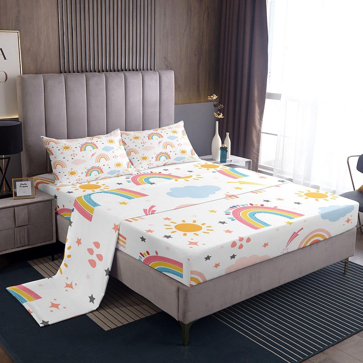 Our bedroom decor bed sheets set look with the vivid stylish and elegant print specifications: Twin Sheet Set: 1 twin fitted Sheet 39 inch x75 inch x16 inch, 1 twin flat sheet 66 inch x96 inch and 1 pillowcase 20 inch x30 inch Full sheet set: 1 full fitted sheet 54 inch x 75 inch x 16 inch, 1 full flat sheet 81 inch x 96 inch and 2 pillowcase 20 inch x 30 inch Queen sheet set: 1 queen fitted sheet 60 inch x 80 inch x 16 inch, 1 queen flat sheet 90 inch x 102 inch and 2 pillowcase 20 inch x 30 inch deep pocket fitted sheet with elastic all around materials: microfiber fabric, lightweight and soft design: With vibrant and novelty designs and 3d print technique, this duvet cover is very suitable as room decor for boys and girls care instructions dry clean preferred; machine washable, use cold water on gentle cycle, tumble dry low