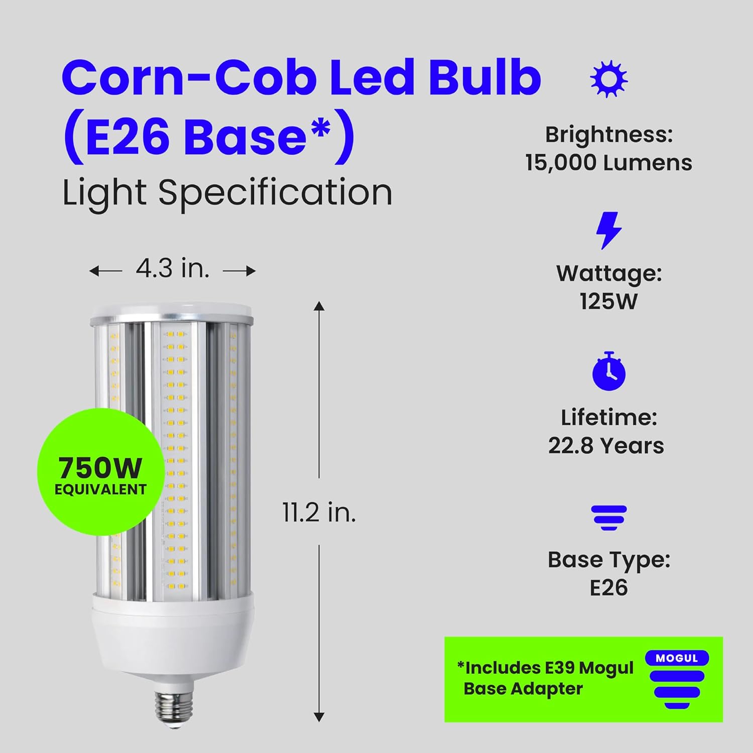 | Model Name | 750 Watt-Equivalent 125W Non-Dimmable High Bright 15000 Lumen Corn Cob |