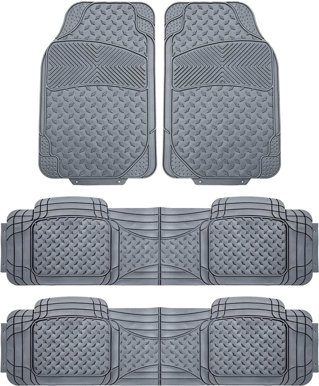Protecting your car’s floors is essential. That’s why FH Group designed multiple styles of floor mats so you can choose the best option to protect your ride! Select between materials such as reliable heavy-duty rubber, classic carpet, luxurious faux leather, and cozy faux rabbit fur. We have floor mats for women, for men, and for everyone! If you want floor mats that protect your car’s floor at all times and from everything, choose some of our rubber and vinyl mats that feature tall outer edges and deep ridge channels to prevent any spill, mud, or dirt from going anywhere in your car. This tough material is also very easy to clean, so you can quickly shake, rinse or wash off any dirt, and the floor mats will be intact and good to go. If you are looking for a more aesthetically pleasing option that will not only protect your car’s interior but also enhance your vehicle's look, we have options for you! If you want a fancy and sleek look, go for our faux leather floor mats. This material not only looks sophisticated, but it also is tough and durable. If comfort and looks are your priority, we recommend our faux rabbit fur floor mats, which will make your car comfy and cozy. No matter what floor mat you choose, just know that FH Group’s products got you covered!