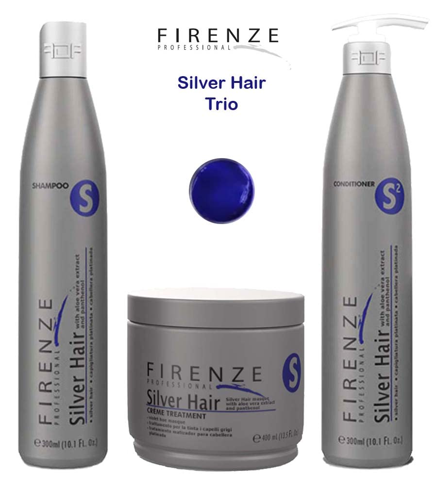 Platinum blonde colored hair, highlighted, bleached or gray hair SILVER HUEING FOR GRAY HAIRS Silver Hair products have been developed using texturizing complexes with special pigments, which neutralize yellowish hues, and produce silvery and bright gray hairs. HUEING FOR HIGHLIGHTED HAIR Silver Hair products are recommended for controlling varying hues in highlighted hair, because it delays color oxidation and prevents them from appearing yellowish while at the same time enhancing their color. 1. SHAMPOO 300 ml (10.1 Fl. Oz) 1000 ml (33.8 Fl. Oz) 2. CONDITIONER 300 ml (10.1 Fl. Oz) 3. TREATMENT 400 ml (13.5 Fl. Oz) 1000 ml (33.8 Fl. Oz) 1. Especially formulated to keep grey hair, highlights and blonde dyes vibrant. Prevents grey hair oxidation, reducing yellowish tones. Brings back the shine to the hair. 2. Neutralizes yellowish tones produced due to hair-color oxidation. Especially formulated to keep grey hair, highlights and blonde dyes vibrant. Softens and nourishes the hair strand. 3. Specialized treatment that strengthens hair after applying bleaching processes. Due to its special pigments, cleans and neutralizes yellowish tones while giving back its vitality to color. Ideal for maintaining a silver hue on highlights or grey hair. Can be used with or without a hat.